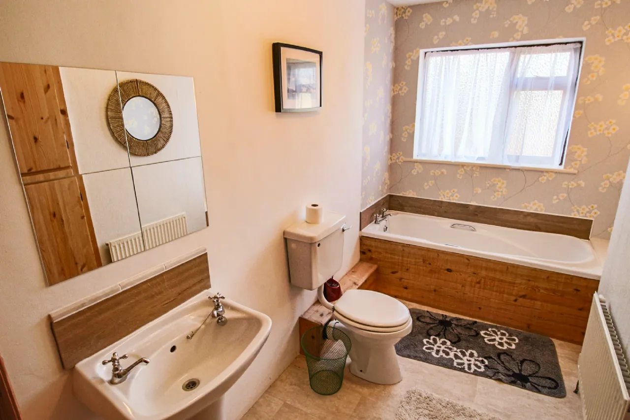 Bathroom 2.91m x 2.01m Laminate tiled flooring, bath, wc&whb, radiator, airing cupboard.
