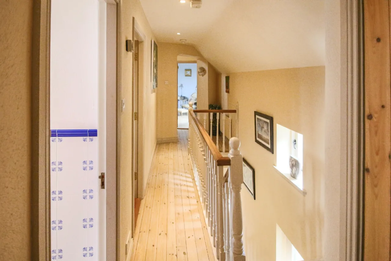First Floor Landing Reclaimed wood flooring, airing cupboard, painted stairs with hardwood hand rail, downlighters.