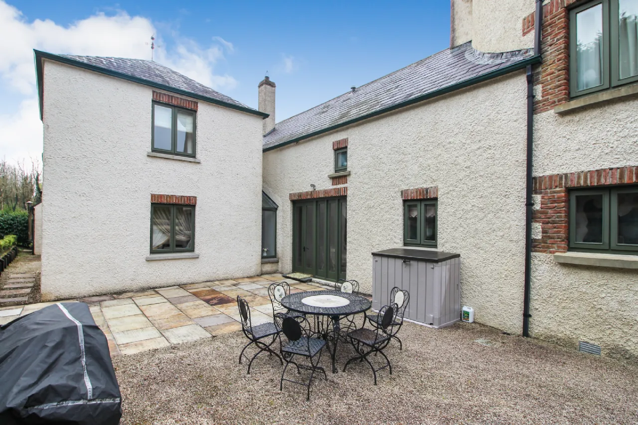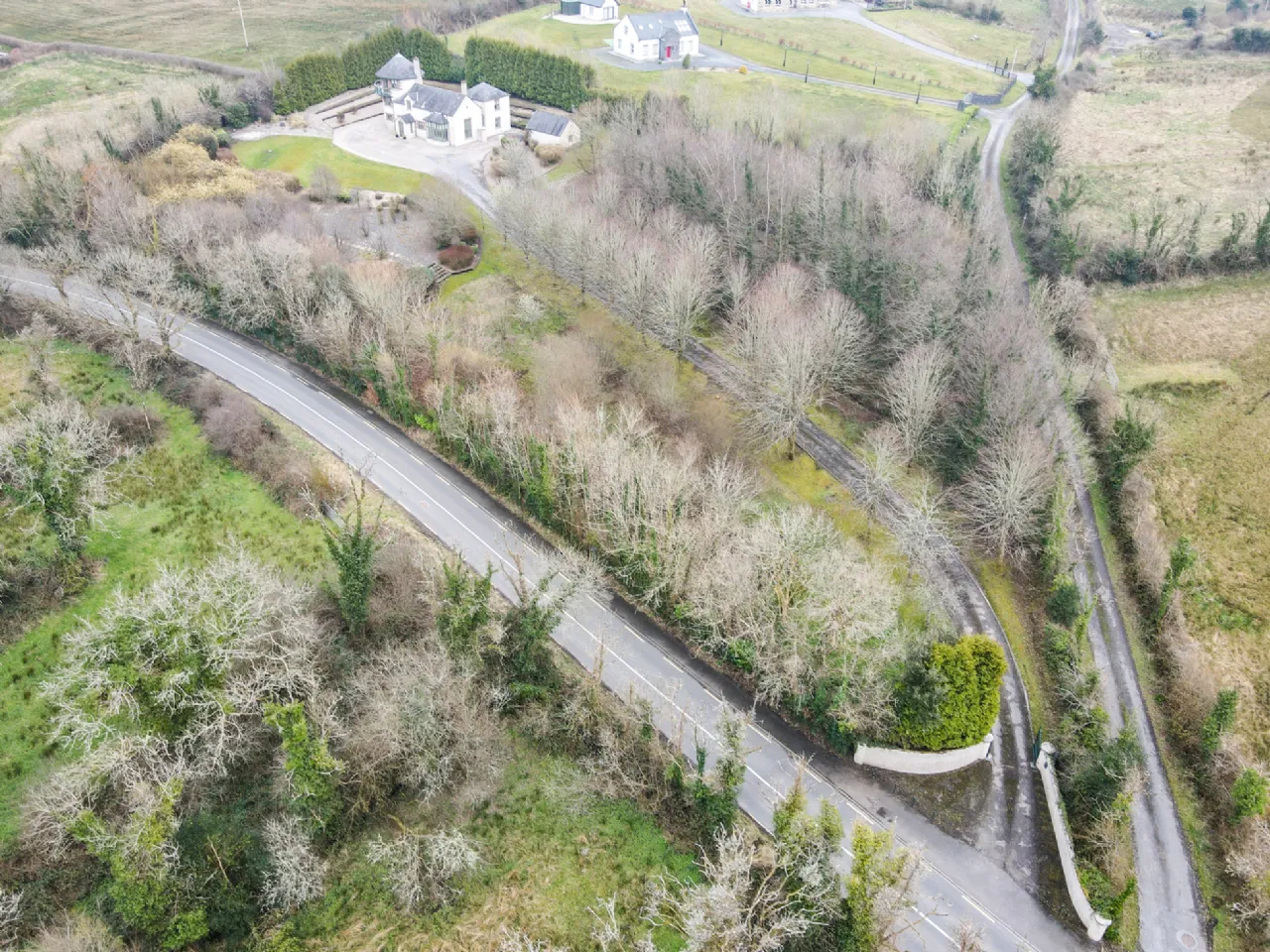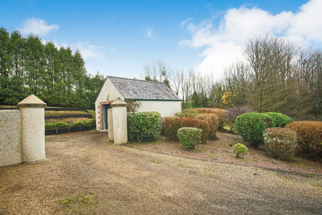 External Detached garage with oil burner. Wrought iron entrance gates with electronic controls, sweeping driveway with gravel finish, extensive parking areas to front and side. Fully mature, landscaped site providing great privacy and security with terraced, raised beds, rockeries, stone paths, variety of shrubs and abundant tree planting.