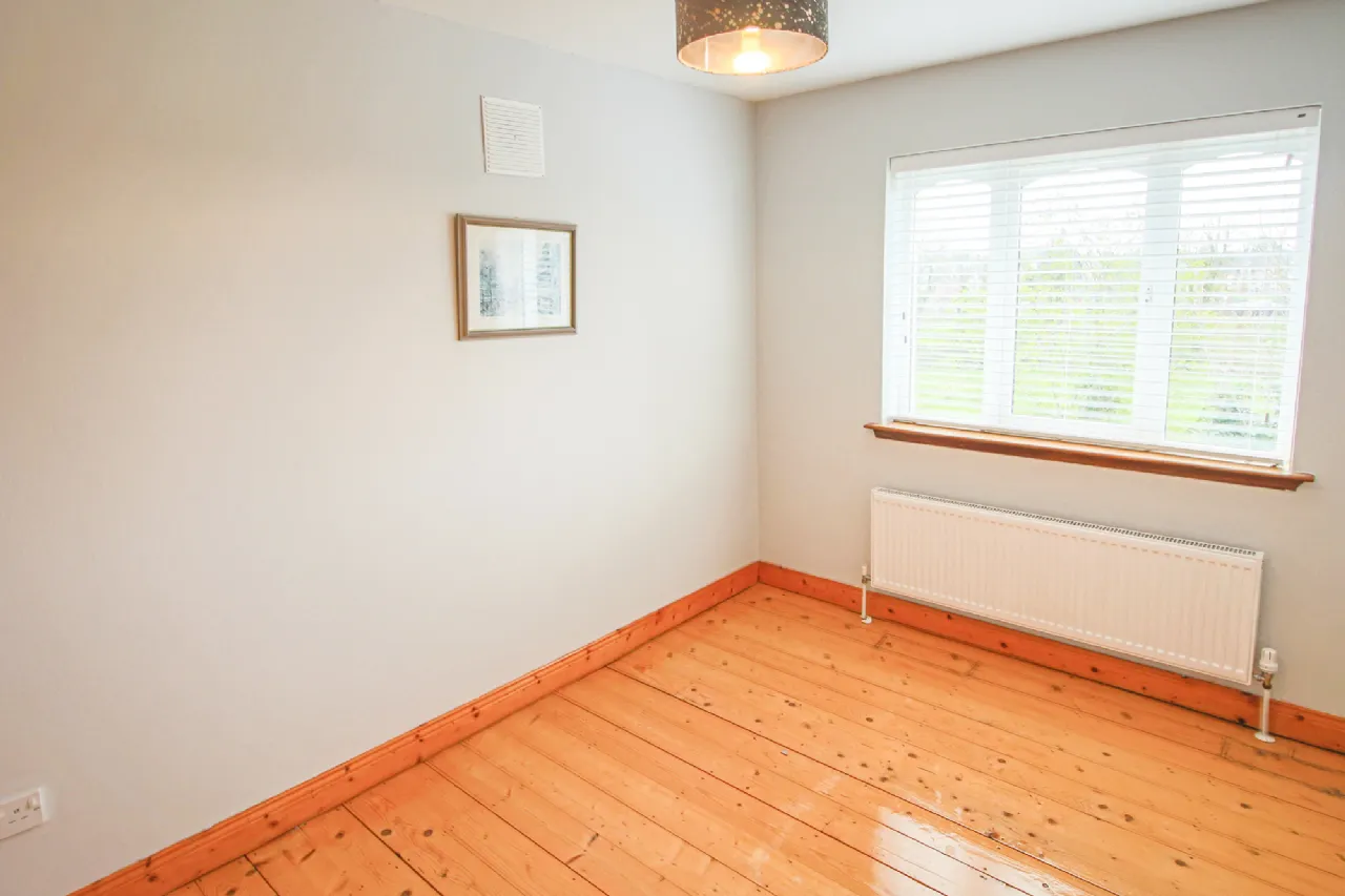 Bedroom 2 3.90m x 2.46m T&G wood floor, wood slatted blind, built in wardrobe.