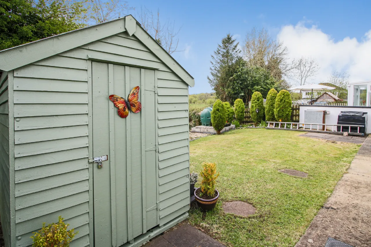 External Tarmac drive, lawn to front, concrete walls, shrubs, patio, oil burner & kerosene tank.