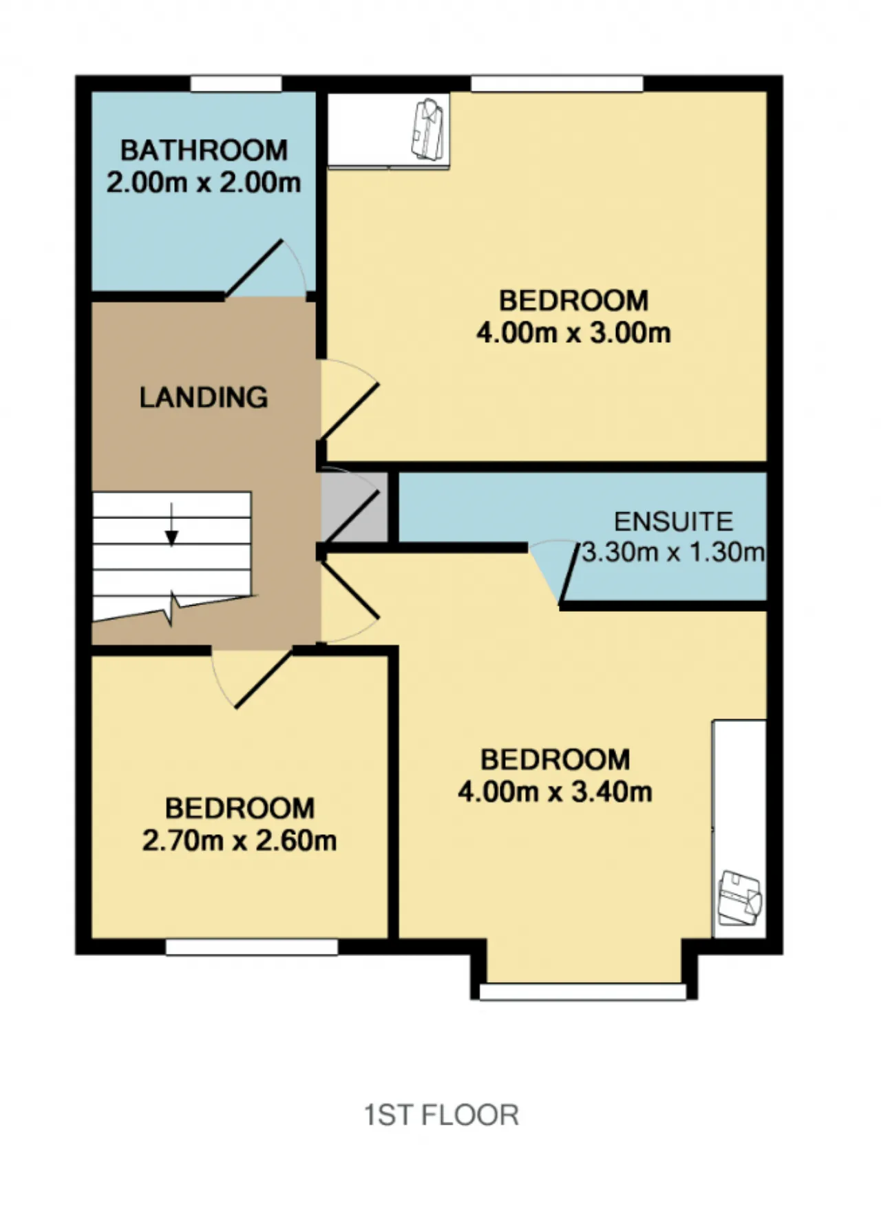 En-Suite With fully tiled walls and floor, pedestal wash hand basin with light and vanity mirror, tiled shower cubicle with Triton T90sr electric shower and WC.