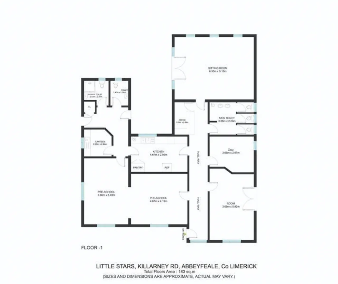 Extending to 175.85 sq m (1893 sq ft), it can cater for 30 children in a bright, fun and educational environment. Accommodation comprises: entrance porch, entrance hallway, preschool, care area x 2, sleep room, kitchen, canteen, w/c x 2, staff toilet/shower room & rear hallway.