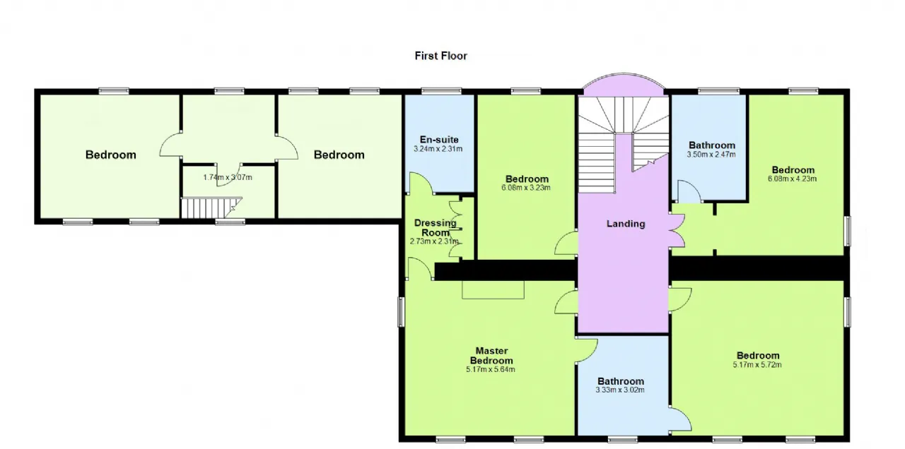 Access to the house is via a flight of stone steps leading to the principal entrance, set within an ornate classical stone doorcase with fanlight. Internally, the original layout is arranged around a central reception hall extending the full depth of the house, incorporating a staircase and tall windows designed to maximise light. The principal reception rooms are positioned off this central axis and benefit from elevated outlooks and generous proportions. While many original features remain evident, the interior requires further works, allowing an incoming purchaser to complete the accommodation to their own specification.