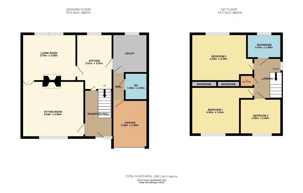 Double doors lead to a second reception which could be used as a living or dining room and is a bright reception space featuring a second fireplace and carpet flooring. The kitchen is well lit and features contemporary units complemented by a stylish backsplash. To the right of the kitchen is a practical utility room, offering added storage, laminate flooring, and the boiler as well as a back door out to the garden. From here, there is access to the integrated garage as well as a downstairs shower room. Upstairs, the property offers three generously sized bedrooms, each featuring carpet flooring and built-in wardrobes. The main family bathroom is tiled with a bath with electric shower overhead.