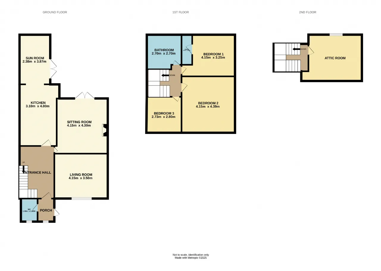 On entering the porch door you are met by some lovely features of the period, including stained glass windows to the front of the house, high ceilings and picture rails, as well as feature fireplaces and parquet flooring. The entrance hall is a wide, welcoming space which leads to all ground floor accommodation, with the living room on the immediate right and a sitting room behind this, also on the right, with double doors which lead out to the rear garden. The kitchen offers excellent space for cooking and entertaining and opens out to a sun room overlooking the rear garden, undoubtedly making this the heart of the home. Upstairs, there are three well proportioned bedrooms, with the main bedroom ensuite and a family bathroom. There are then stairs up to the attic room, which is an excellent additional space, ideal for a home office or children's den.