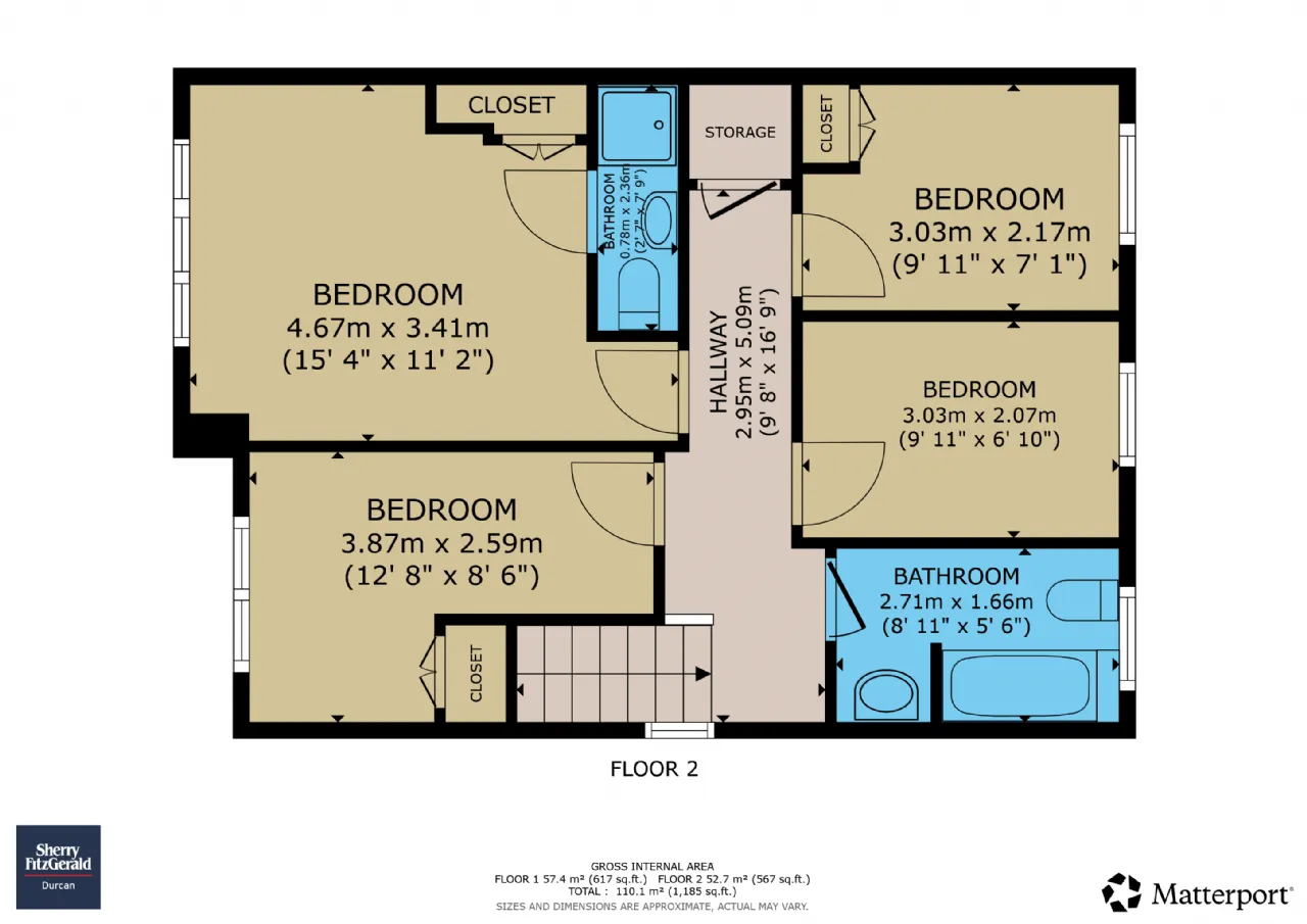 Bedroom 2 3.02m x 2.16m with fitted wardrobe.