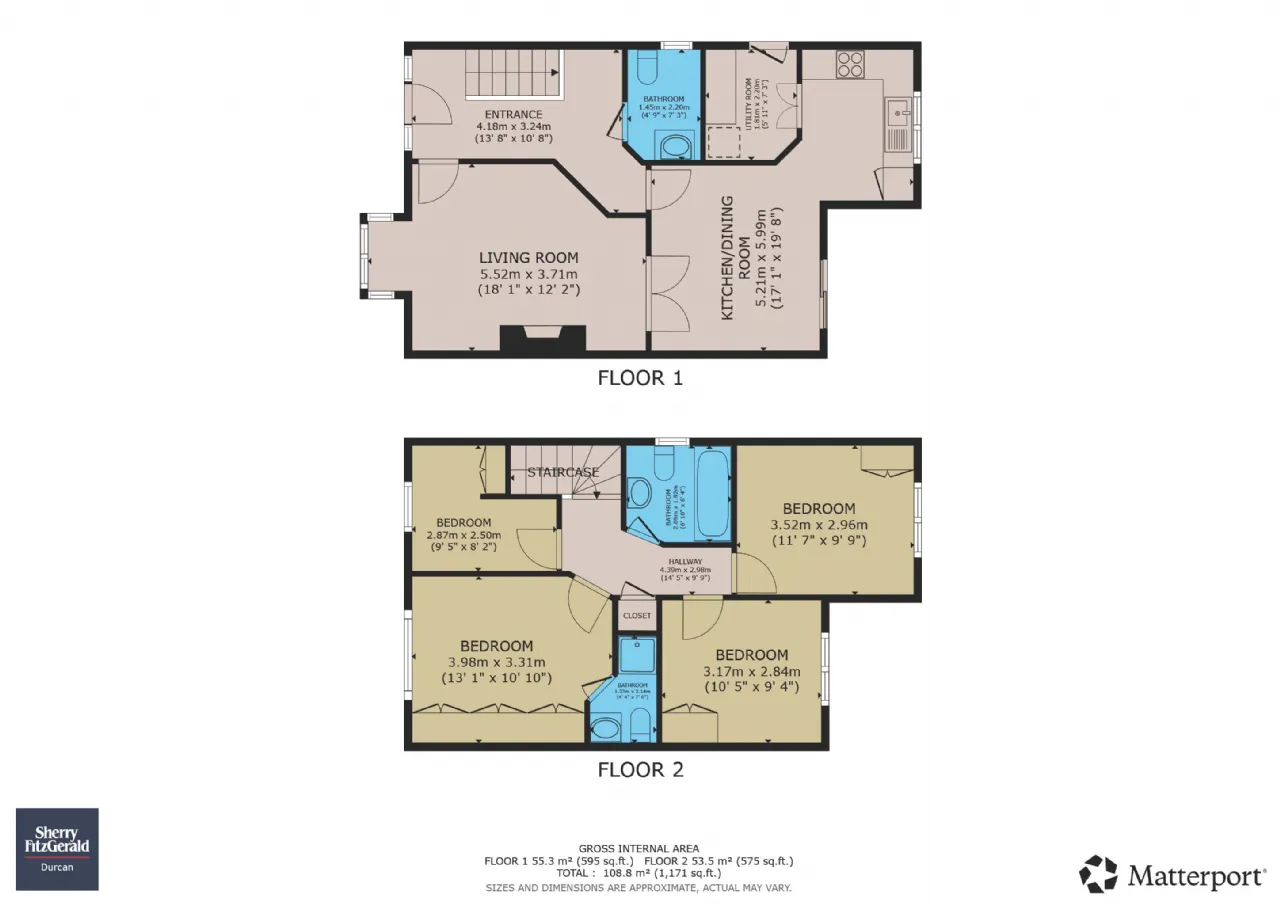 En-Suite 1.32m x 2.13m with wc, vanity unit, electric shower unit, heated towel rail and contemporary tiling to the walls and floors.