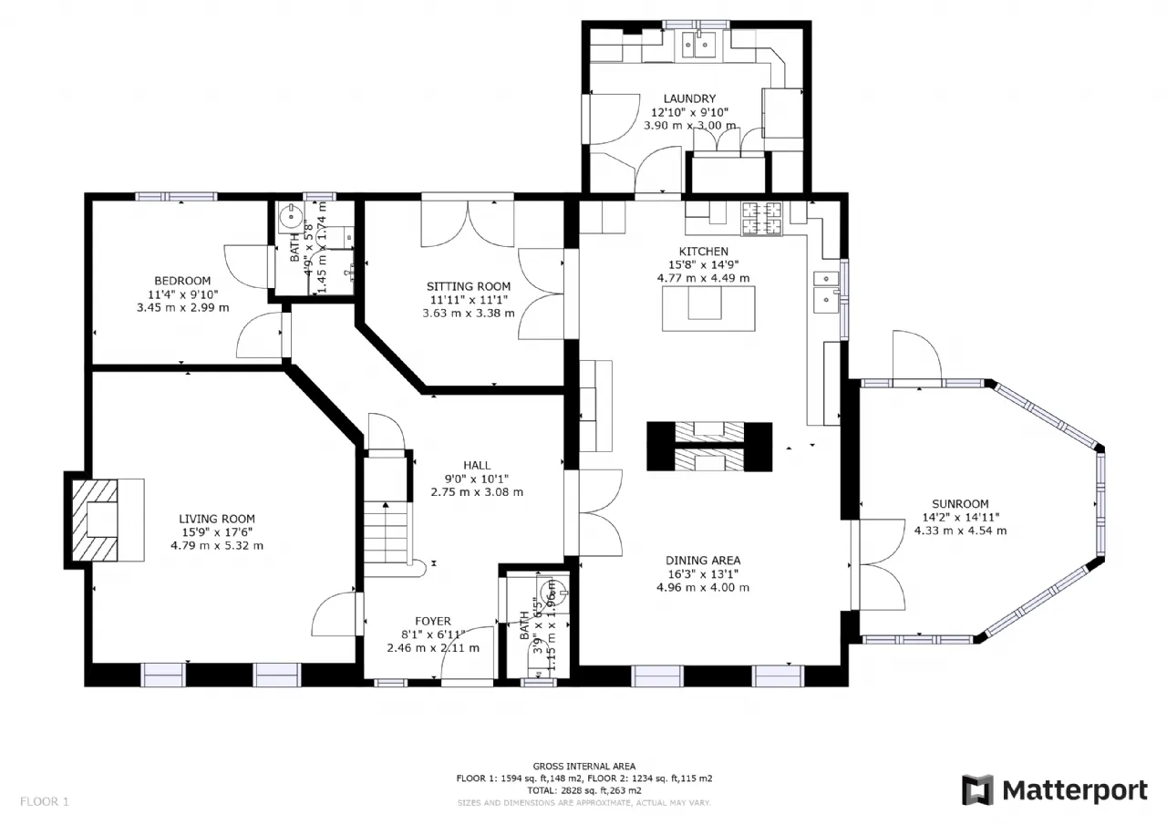 The ground floor flows seamlessly between a series of reception rooms, each designed to balance practicality with elegance. The principal living room, anchored by a feature fireplace and finished with polished timber flooring, offers a perfect retreat for quiet evenings or lively gatherings. A second sitting room provides versatility — ideal as a playroom, library, or cosy snug.