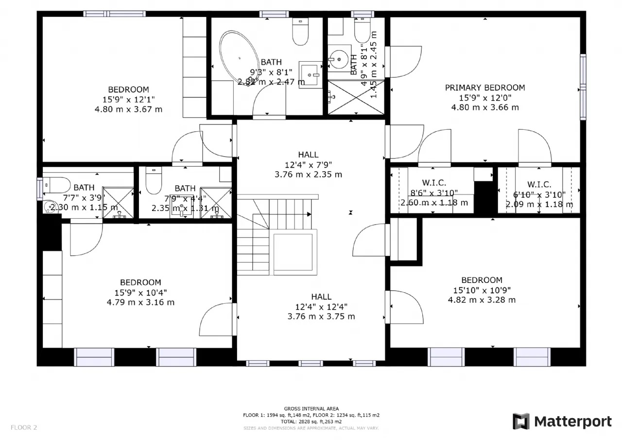 Walk-in wardrobe 2 2.08m x 1.17m with fitted units.