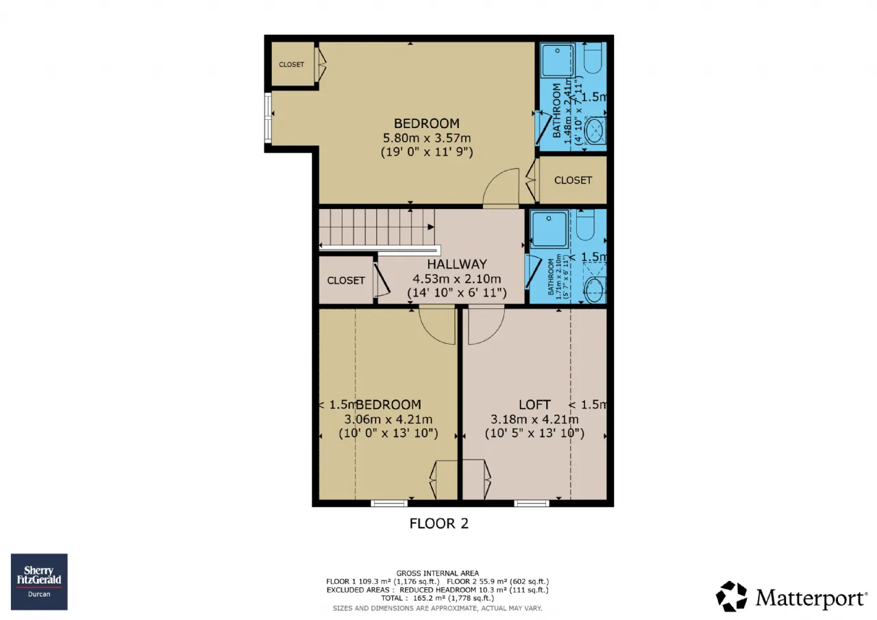 Master Bedroom 5.8m x 3.58m with fitted wardrobes and en-suite.