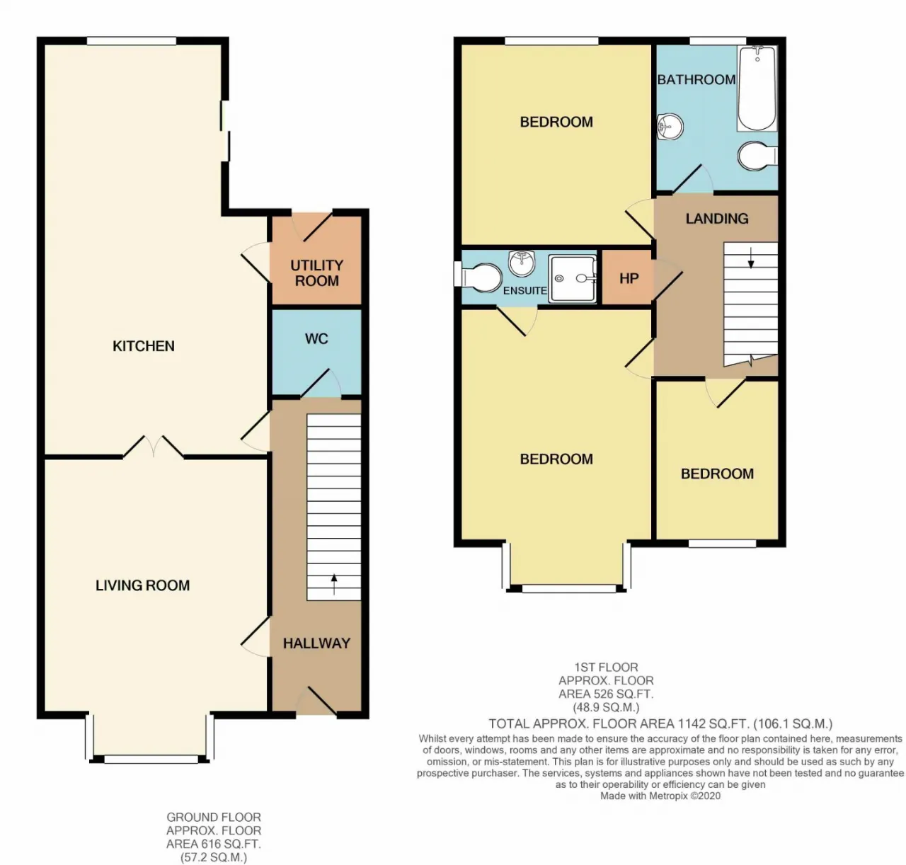 WC 1.6m x 1.7m With tiled floor, WC and wash hand basin.