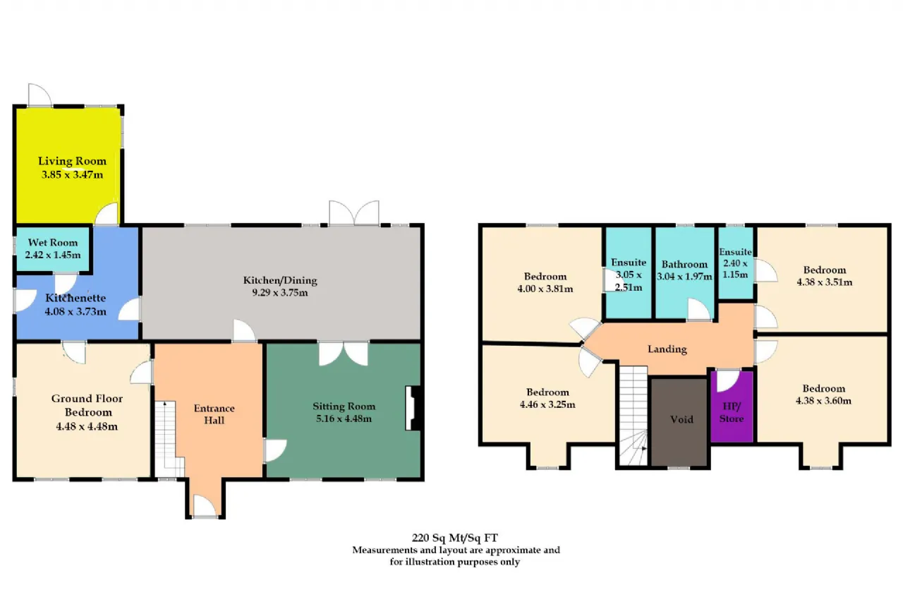 Filled with natural light, the spacious accommodation comprises of an inviting entrance hall, a generous sitting room, and an open plan kitchen/dining area - perfect for everyday family life and entertaining. A separate kitchenette, ground floor bedroom, shower room, and a private living room with its own external access provide a fully functional self-contained living space. Upstairs, you'll find four well-proportioned bedrooms, two of which boast en-suite shower rooms, along with a stylish family bathroom.