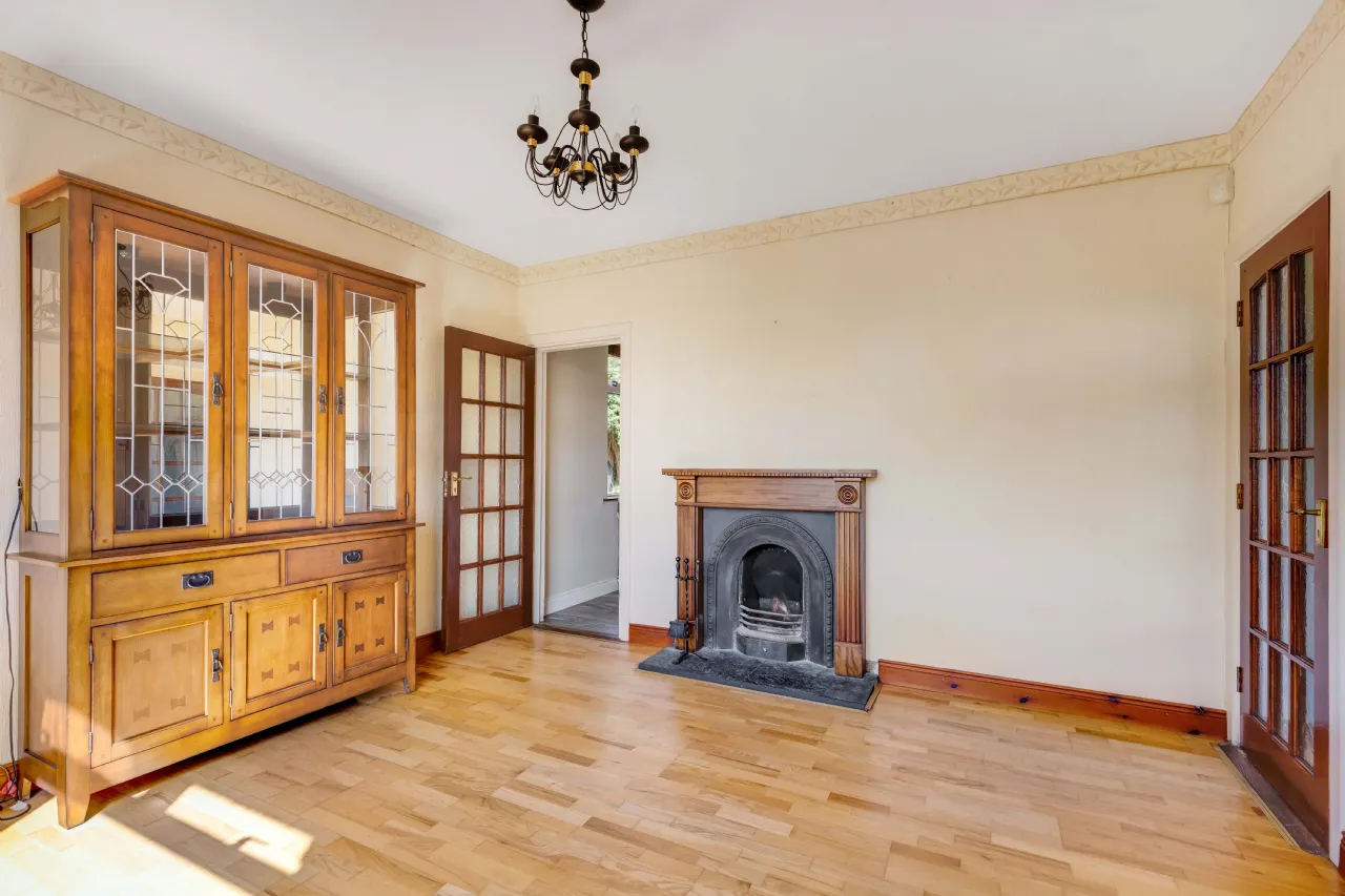 Dining Room: 3.95m x 3.75m Wooden floor, open fire, front facing.