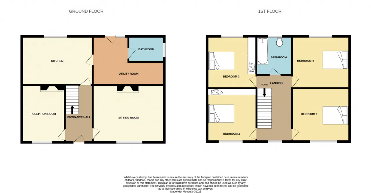 Upstairs four bedrooms radiate from a spacious landing. The fully tiled bathroom completes the accommodation.