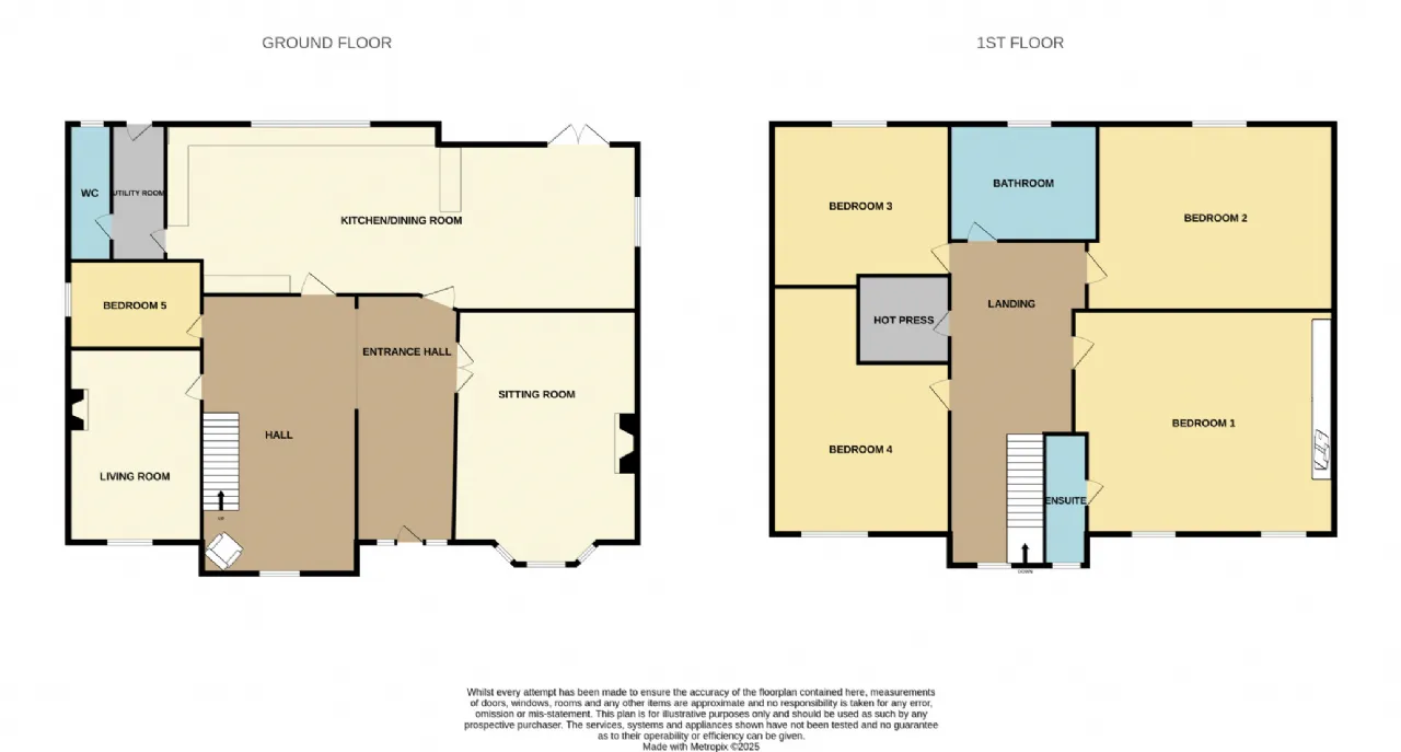 Upstairs four spacious bedrooms radiate from a generous landing. The main bedroom is complete with en suite. The main bathroom is fully tiled and features standalone bath. Overall a magnificent home of distinction and viewing is strongly recommended.