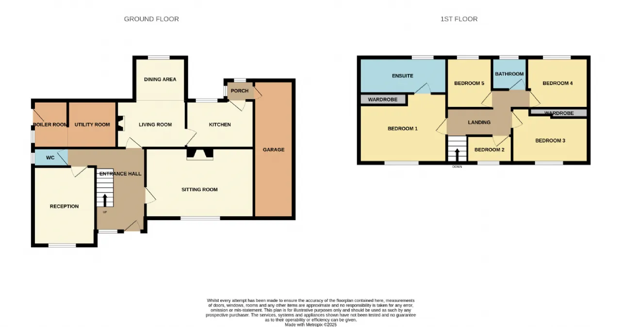 Upstairs there are five bedrooms 1 en-suite and main bathroom. The property needs modernising to bring it to its full potential.