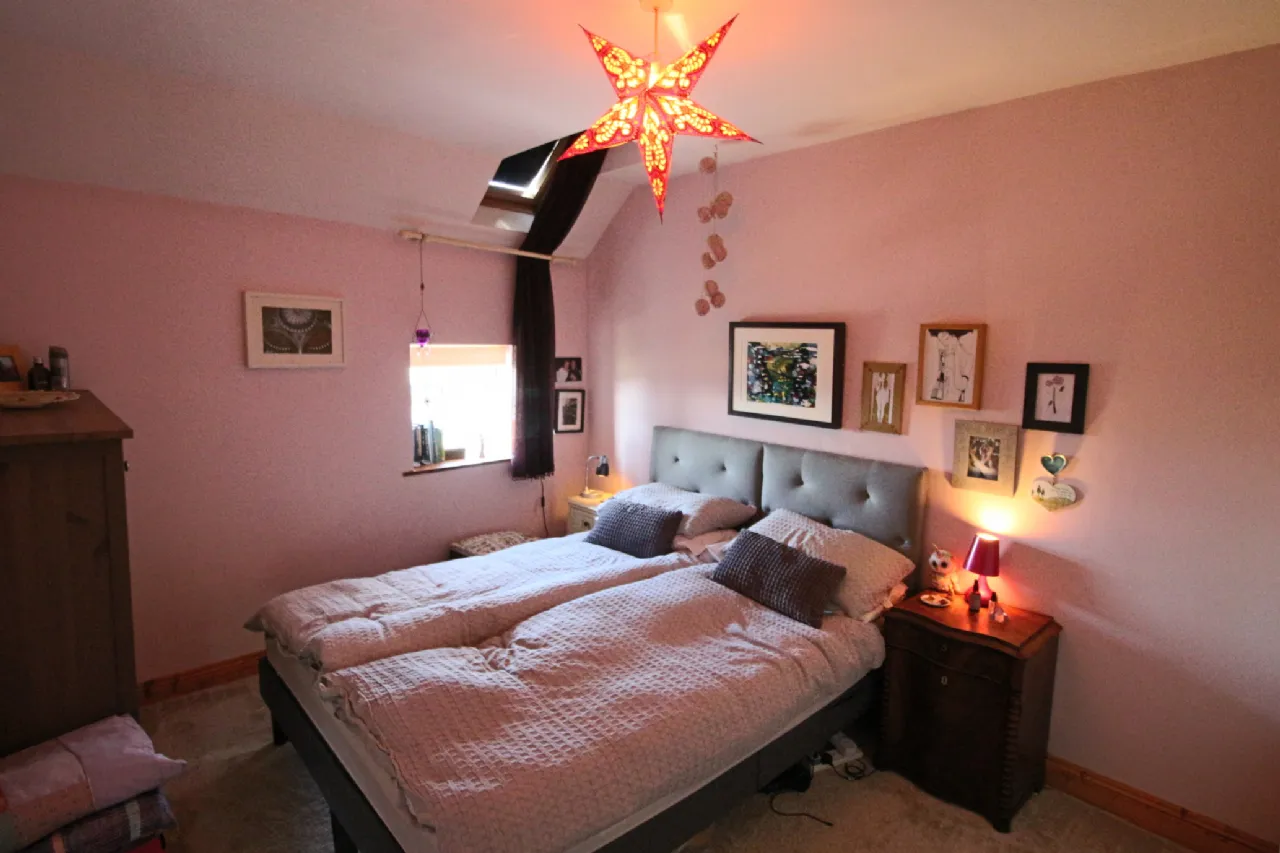 Bedroom 3 3.90m x 3m Carpet, radiator, built in wardrobes, window and Velux roof light.