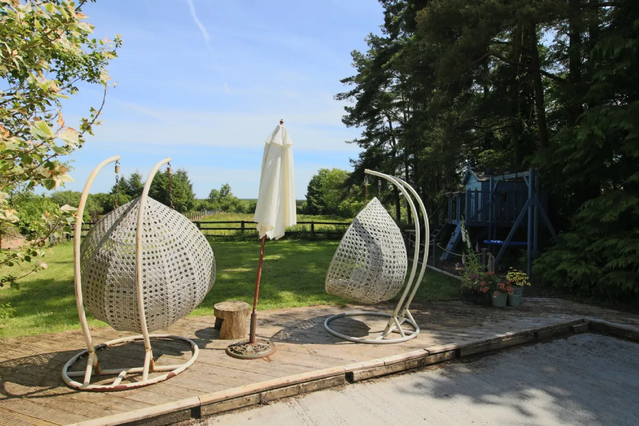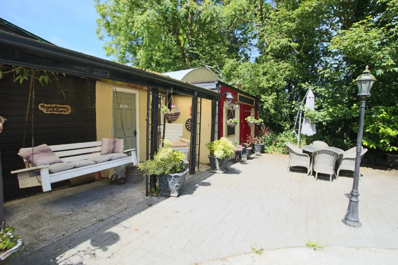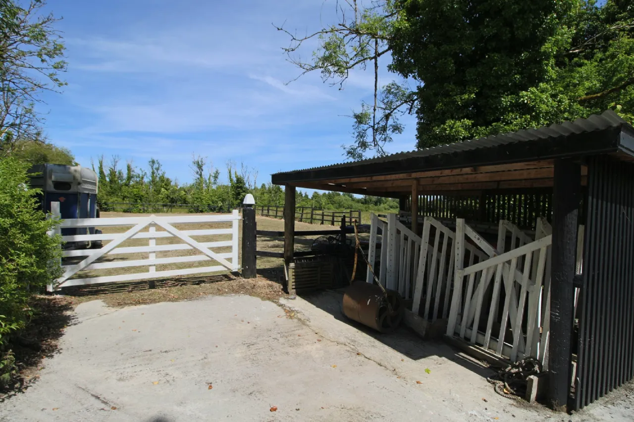 External Lean-to shed Concrete yards to front, side and rear Oil Tank & Burner Raised Patio with flag stones Extensive wooden treehouse with swing Outdoor Jacuzzi hot-tub Double wood gates to front concrete yard Turf Shed 12 Stables Outdoor exercise arena Circa 8 Acres lands, primarily in fenced paddocks