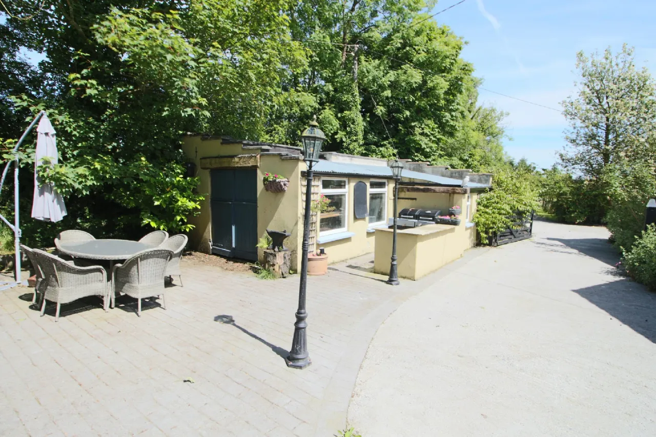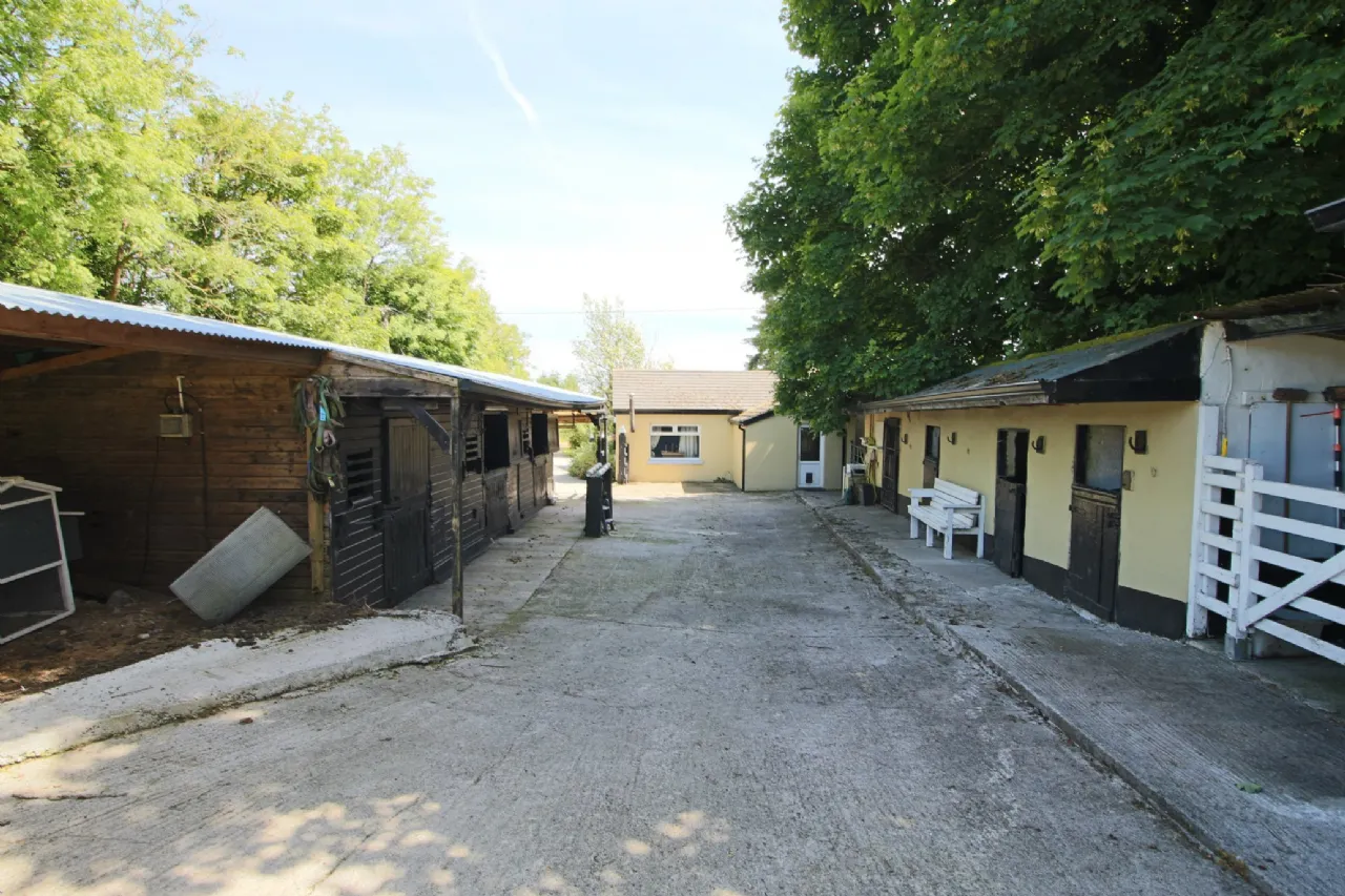 Sherry FitzGerald Farrell are delighted to bring to the market this unique and charming country residence together with equestrian facilities, extensive outbuildings, single-storey cottage (uninhabited), and circa 8 acres of gardens, paddocks and yards.