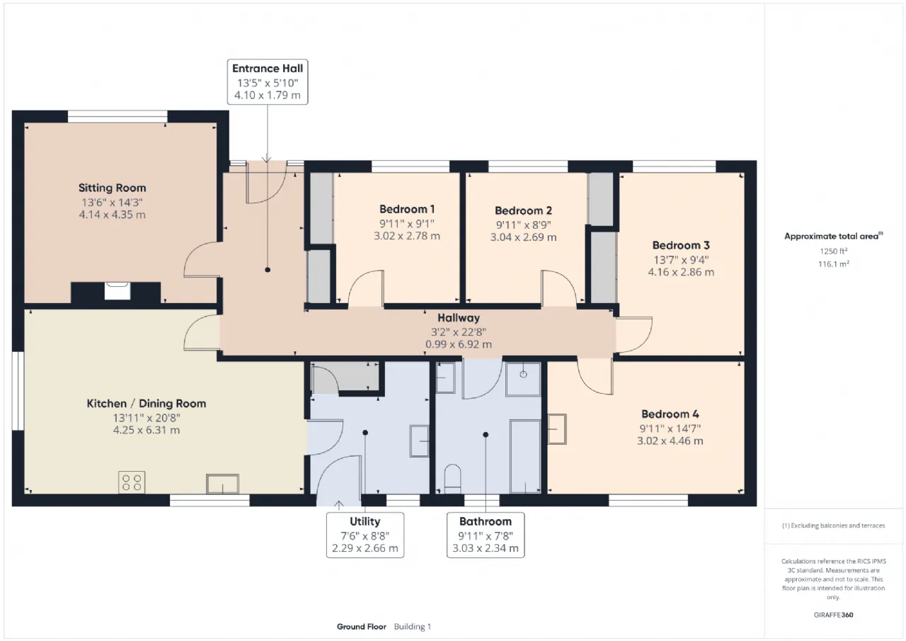 Accommodation comprises Entrance Hall, Sitting Room, Kitchen / Dining Room, Utility Room, Hallway, 4 no. Bedrooms and a Main Bathroom.