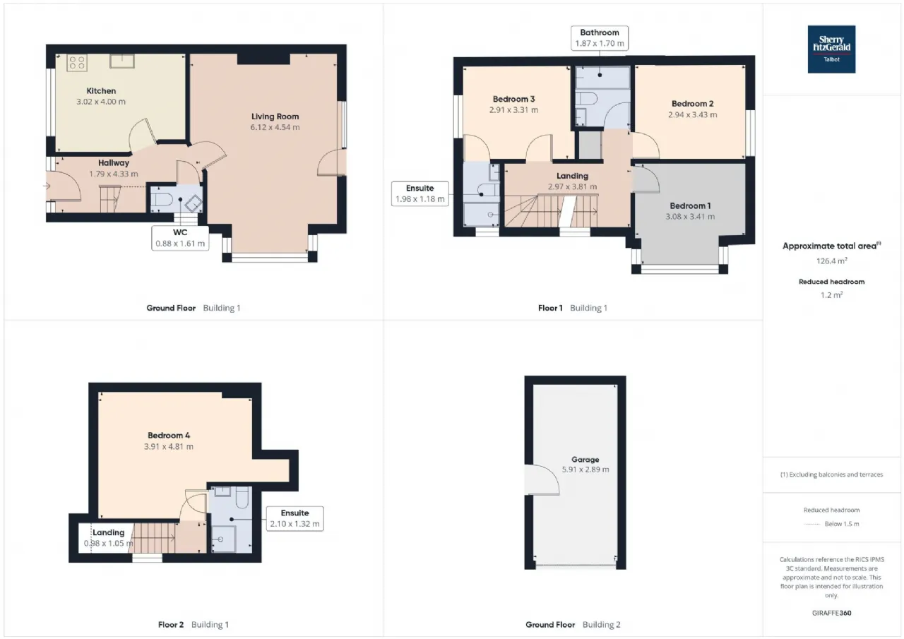 The first floor includes three well proportioned bedrooms, with master ensuite, and a family bathroom. The second floor provides a spacious fourth bedroom with ensuite, ideal as a guest suite or home office.
