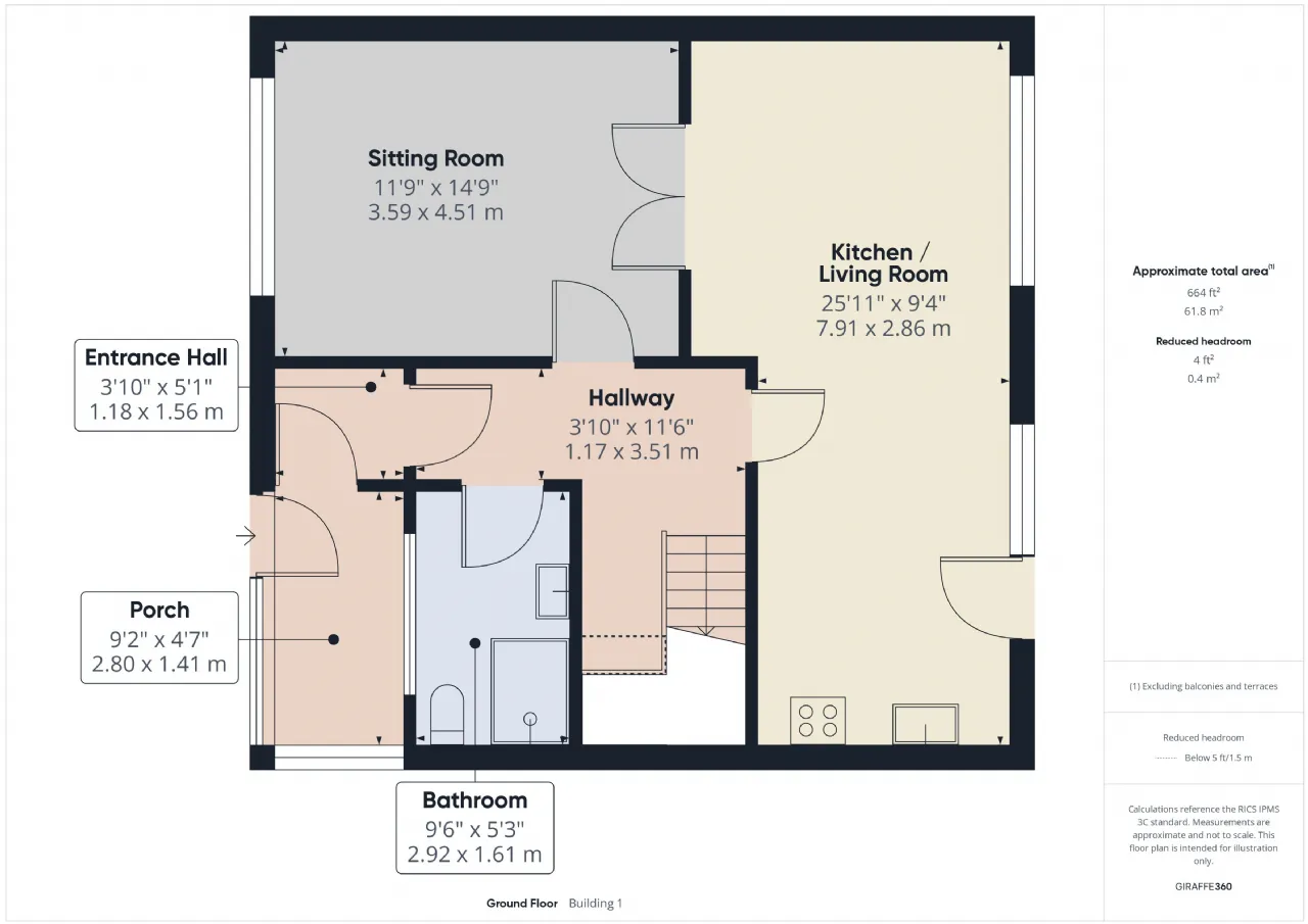 Entrance Hall 1.18m x 1.56m With tiled flooring and under stairs storage