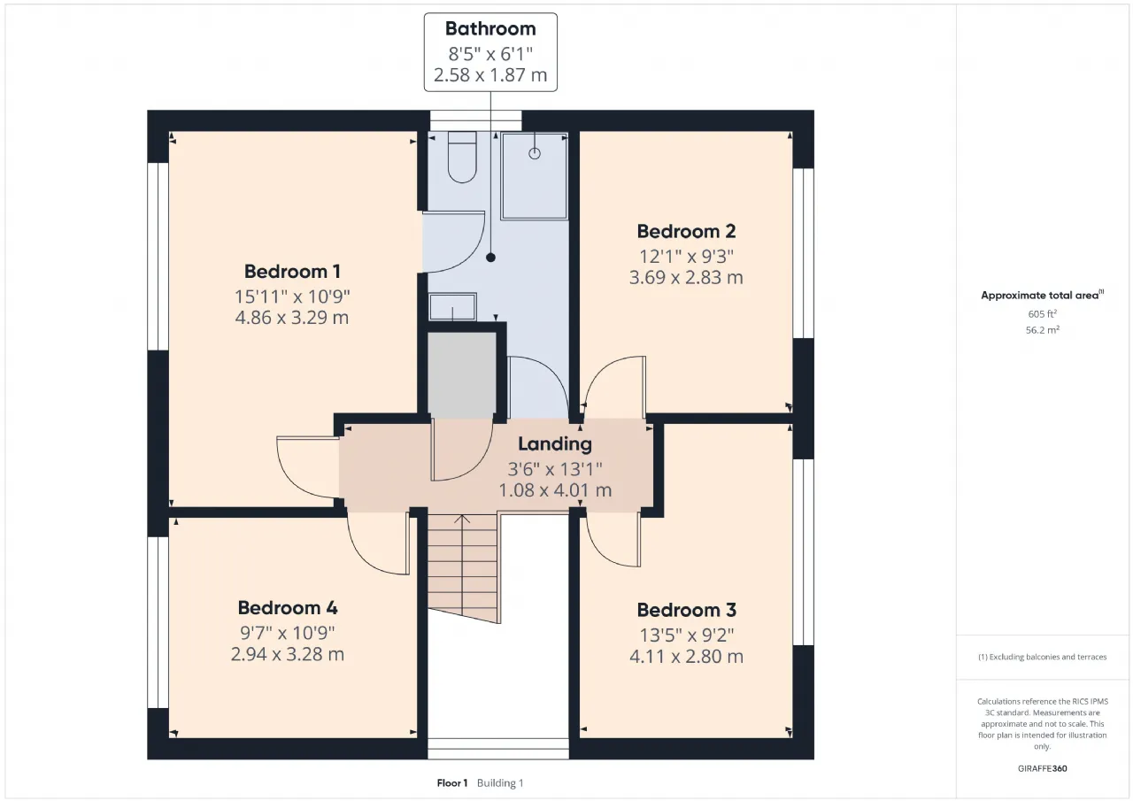 Landing 1.08m x 4.01m With Hot-Press and Stria to Attic