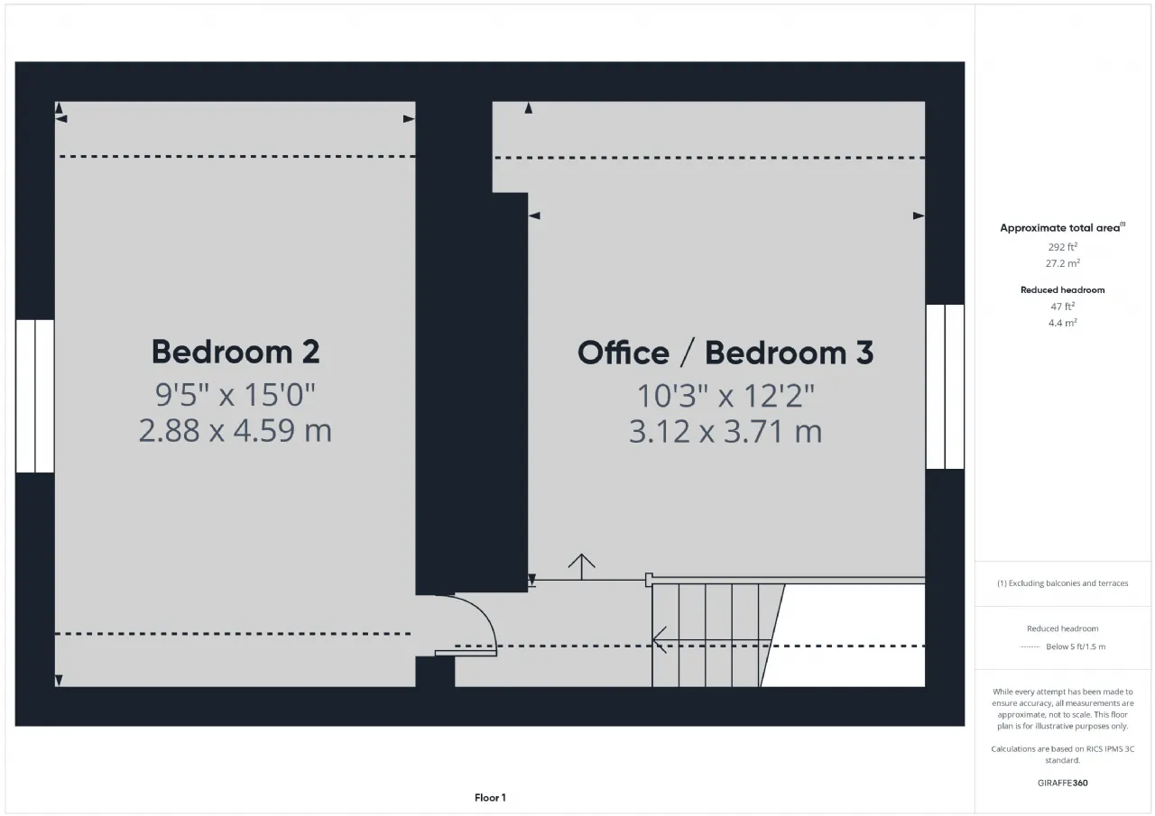 Entrance Hall, Kitchen / Diningroom, Bathroom, Bedroom 1
