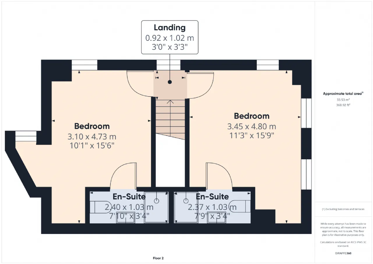 Bedroom 3.10m x 4.73m Rear orientation; double room; frosted duel aspect window; skylight with velux window; en-suite.