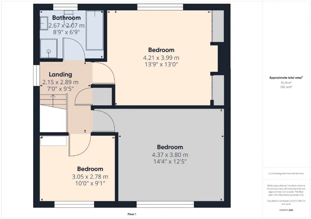 Landing 2.15m x 2.89m Carpet stairs and landing; fitted shelves.