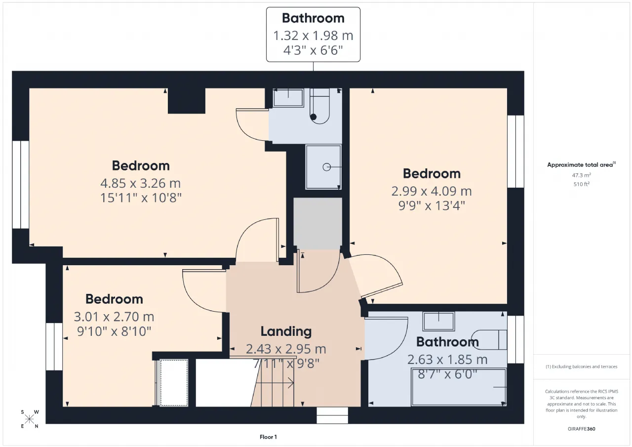 Upstairs, the principal bedroom has an en-suite bathroom, The other two bedrooms also have built in wardrobe space. There is a large bathroom in just off the landing that has tiled flooring, W.C, toilet and bath/shower.