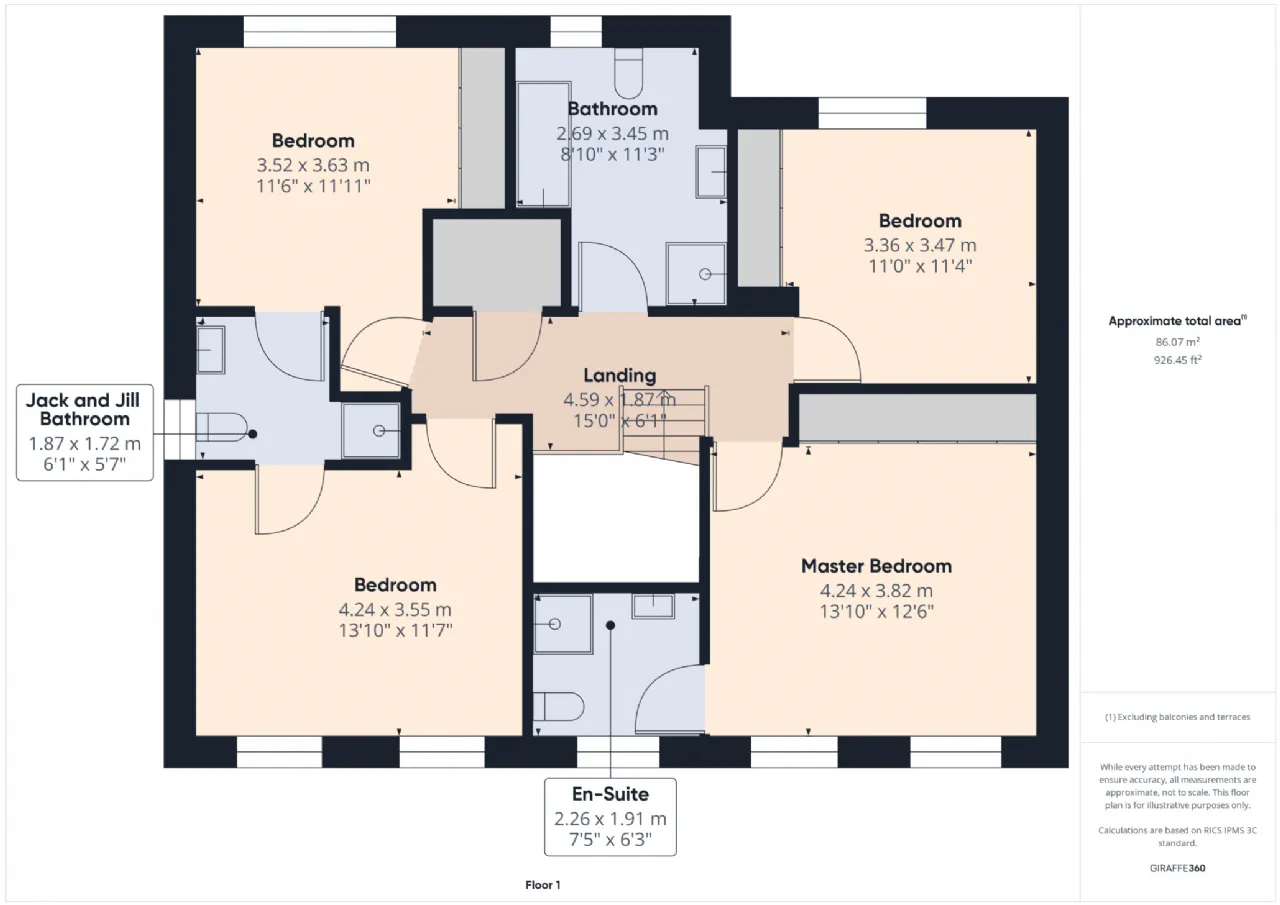 Bedroom (Master) 4.24mx 3.82m Double room with wooden floors, built in wardrobes and front facing aspect.