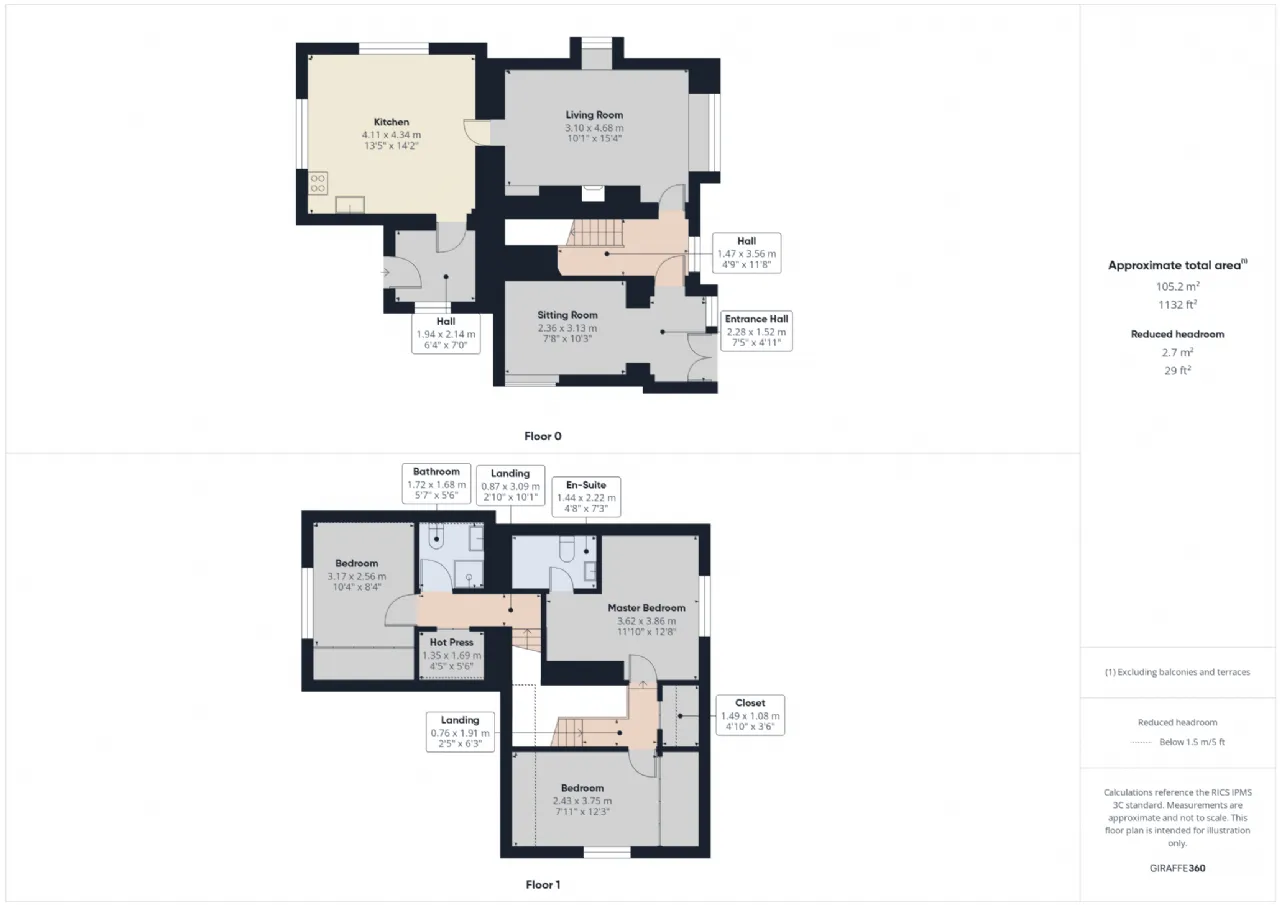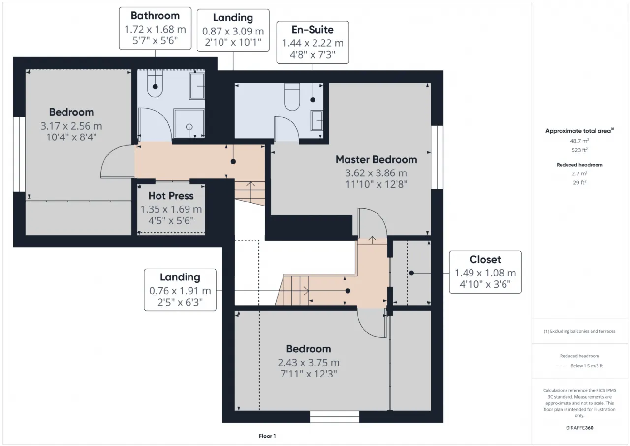 Master Bedroom 3.62m x 3.86m Front orientation; small double; bedroom: floor; fitted wardrobes; en-suite.