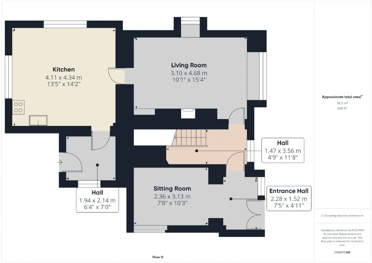 Entrance Hall 1.94m x 2.14m Tiled floor.