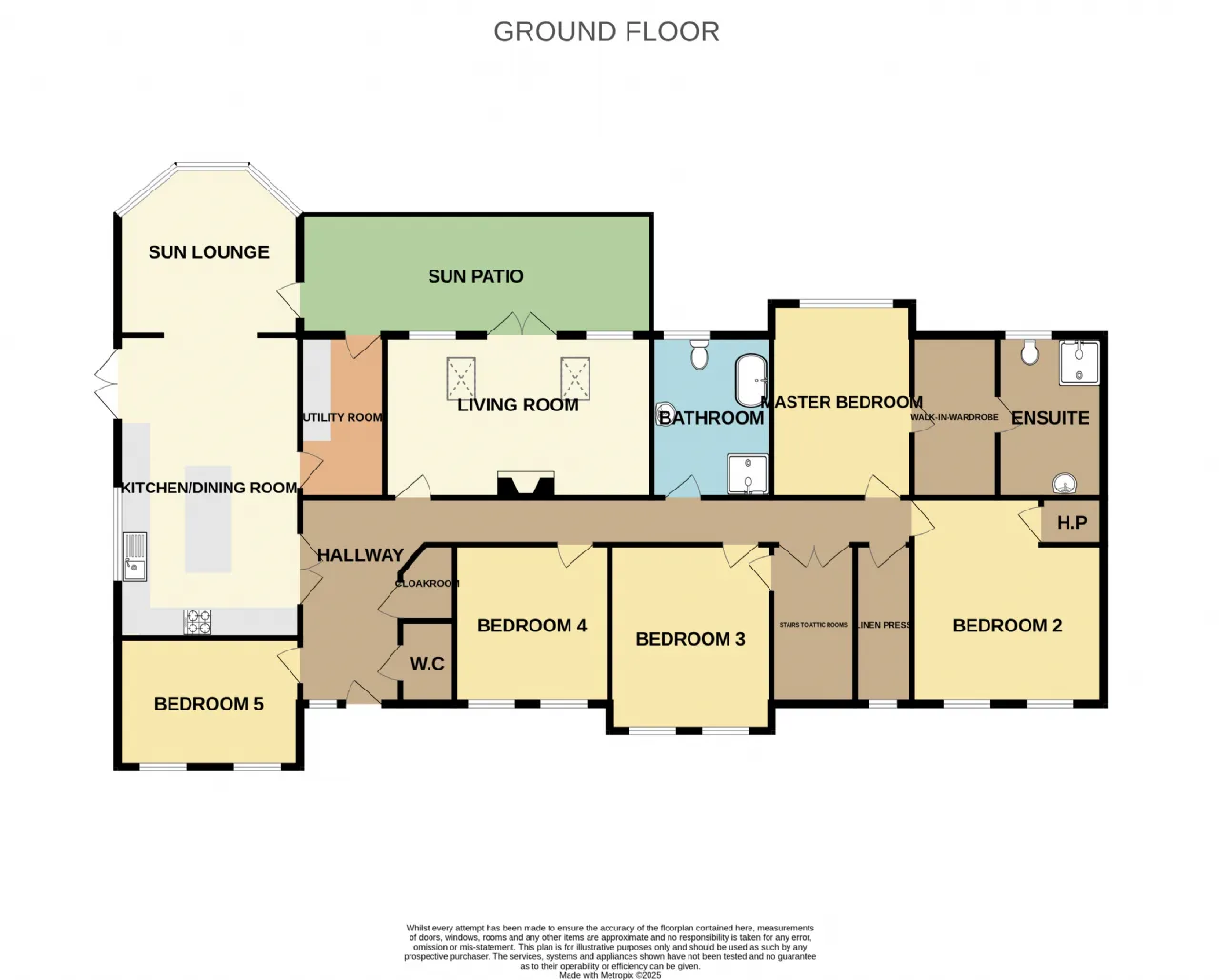 Inside, the bungalow boasts a spacious interior. The lounge is located to the front of the property with large windows to avail of the views the property has to offer. The five bedrooms are off the main hallway and of ample size. The master bedroom is again located to the front with magnificent views and walk-in-wardrobe and large ensuite.