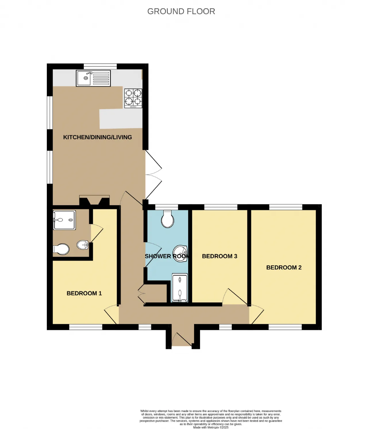 Inside, there are 3 bedrooms to the front of the property with the main bedroom having its own ensuite and the shower room servicing the remaining two. The open plan kitchen/dining/living room is to the rear and is a lovely bright room with windows to all sides, open fire and French doors to the south facing patio.