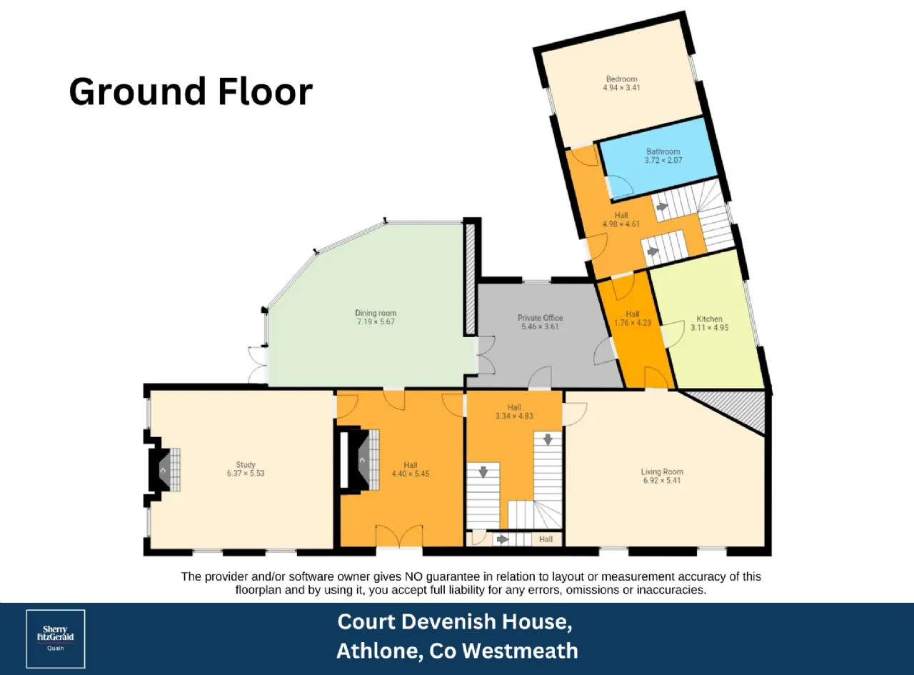 The property is heated via oil fired central heating and solid fuel feature fireplaces. BER is exempt as the property is a protected structure.
