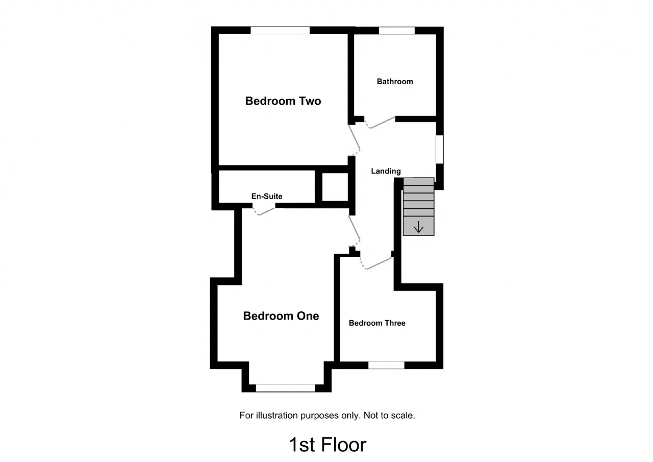 Upstairs, the carpeted landing leads to three generous bedrooms, all with laminate flooring and built-in wardrobes. The primary bedroom comes en-suite with tiled flooring, wash hand basin, and WC, while the main family bathroom is fully tiled and fitted with an electric power shower.