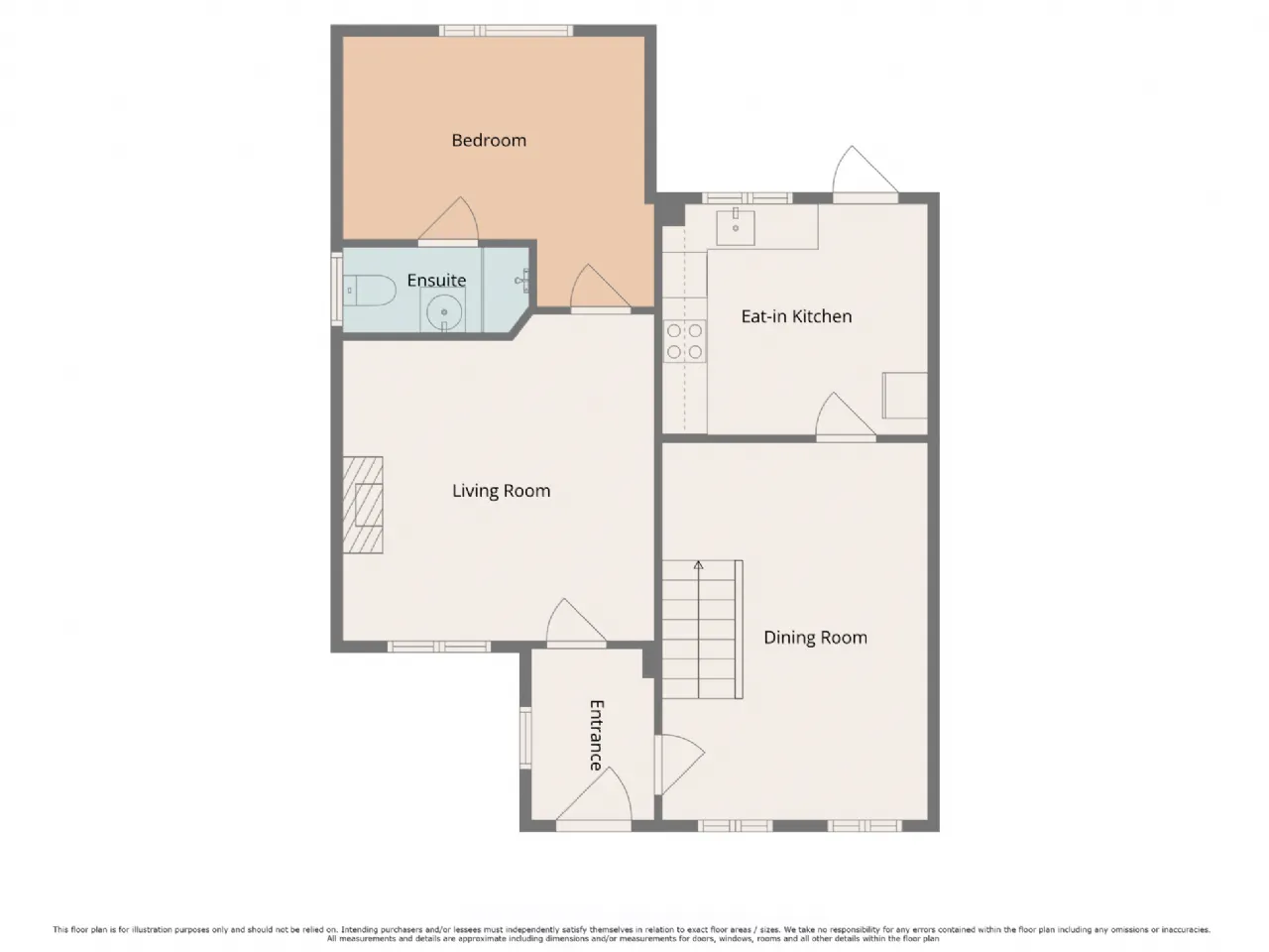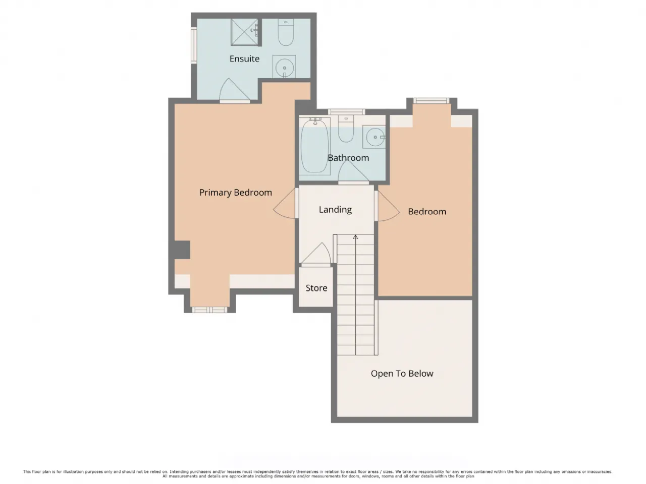 En-Suite 2.68m x 2.56m With tiled flooring WC, WHB, power shower and skylight.