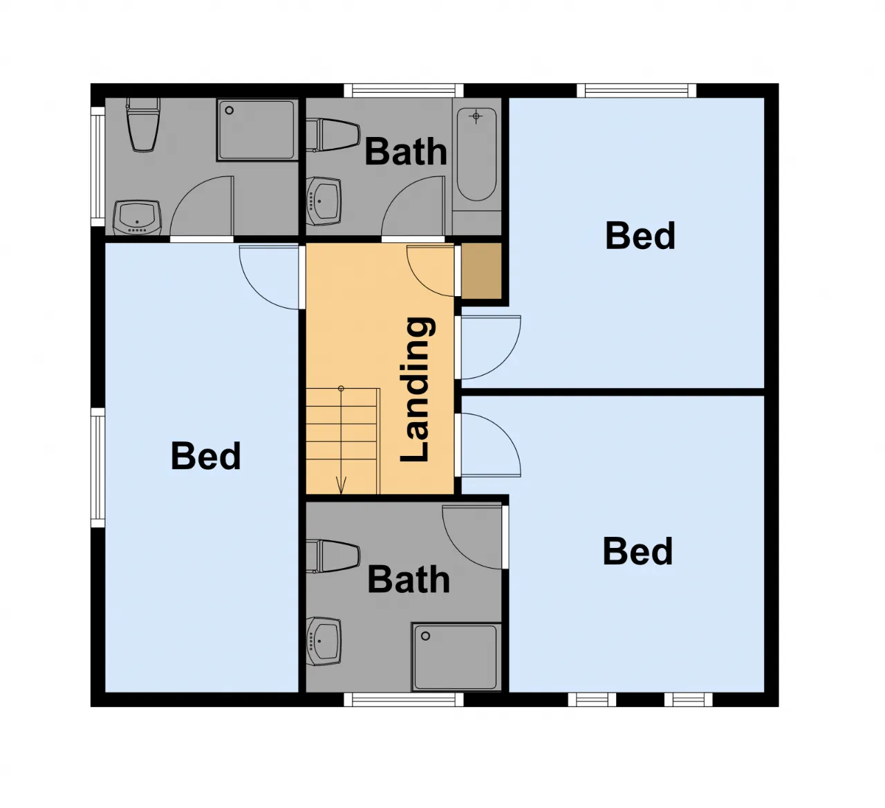 This impressive 4 bedroom home with 2 ensuite bedrooms upstairs and one bedroom on the ground floor, comes to the market in great order throughout. Room sizes are very generous with a living room with open fire, kitchen/dining area to the rear and double bedroom on the ground floor. Upstairs are three good-sized double bedrooms (2 ensuite) and the family bathroom.