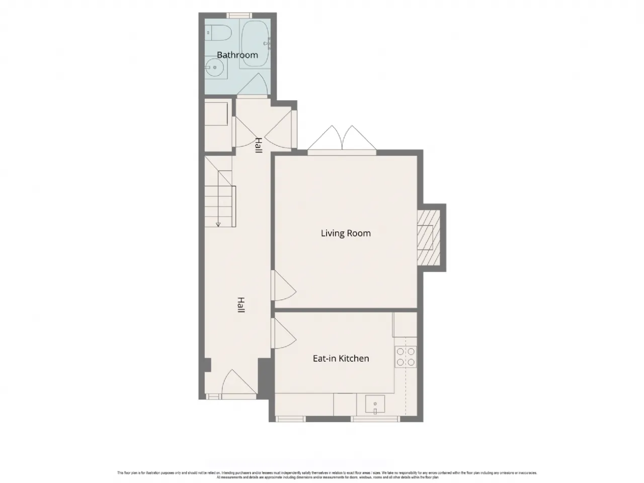The kitchen is to the front of the house with the living room with open fire to the rear, and French door access to the patio area of the south facing rear garden. To the back of the hallway is a plumbed area where washing machine and tumble dryer are stacked, rear door access and the family bathroom. Upstairs are three bedrooms - two doubles and a single room.