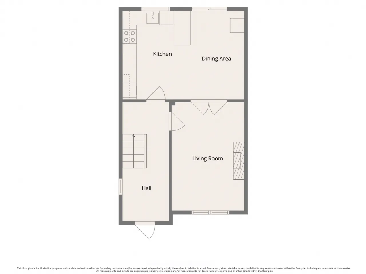 Living Room 4.78m x 3.38m Front facing window, timber flooring, solid fuel fire and double doors accessing the kitchen/dining area