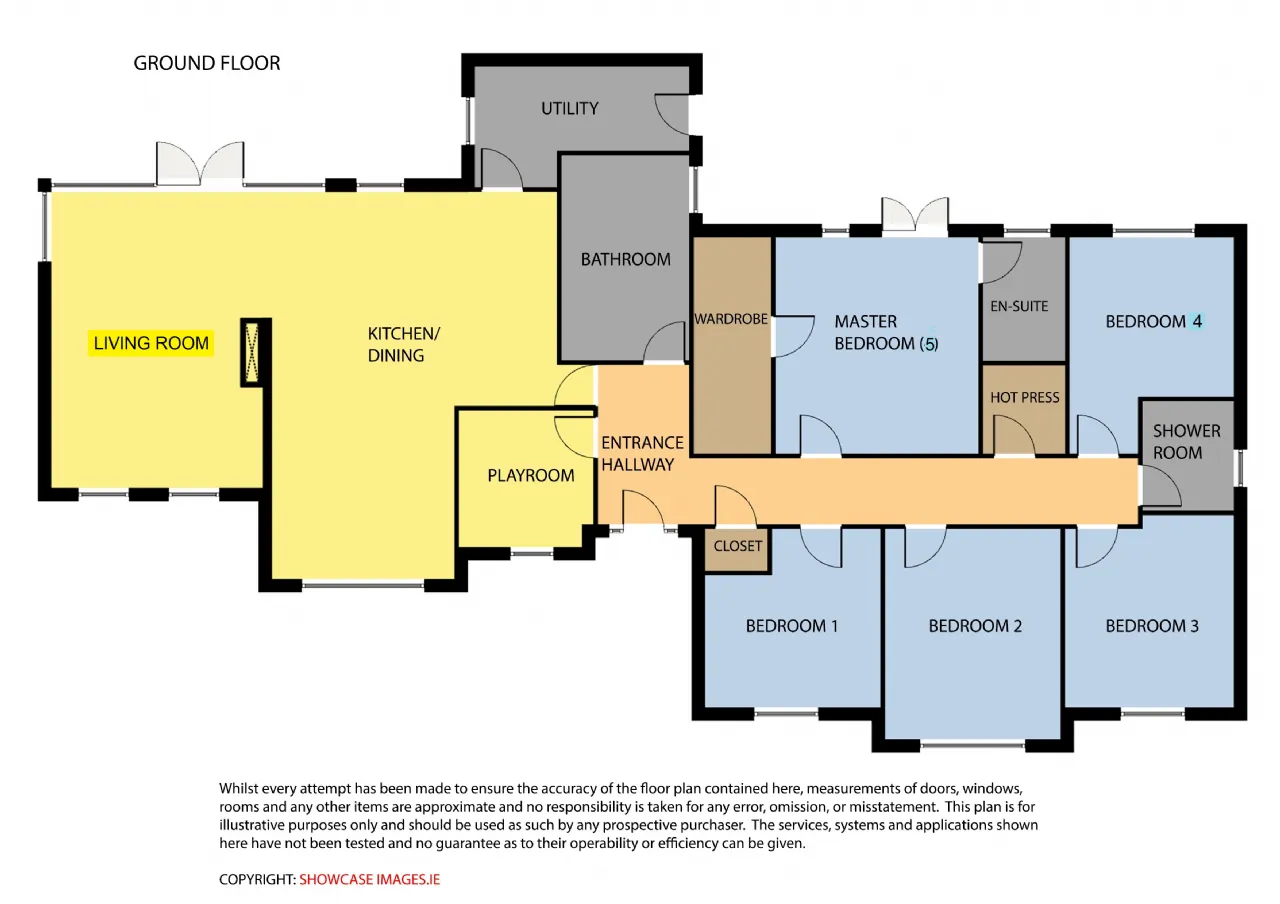 Accommodation comprises; entrance hall, living room, kitchen/dining room, utility room, playroom/office/study, main family bathroom, five bedrooms, shower room, ensuite and walk in wardrobe.