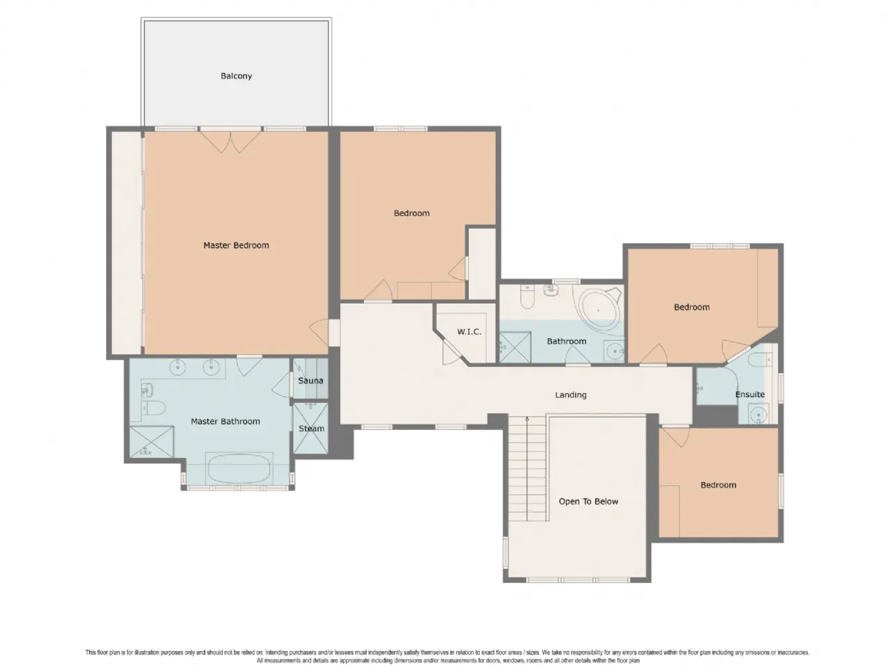 Huge Master Bedroom with large balcony and ensuite which includes a sauna and steam room.
