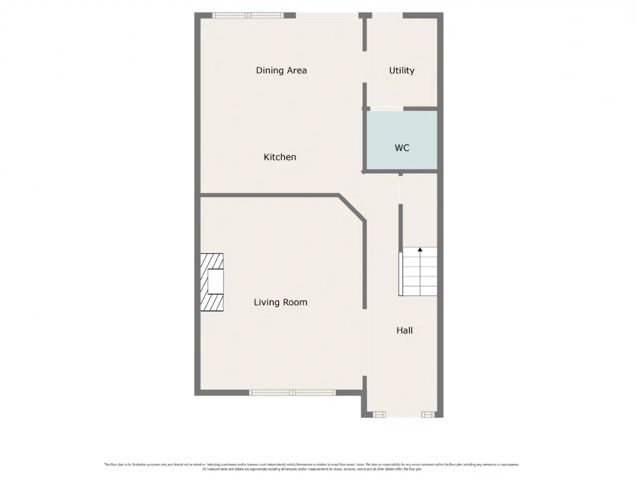 Guest WC 1.64m x 1.45m Wc, wash hand basin with tiled splashback, extractor fan, tiled floor