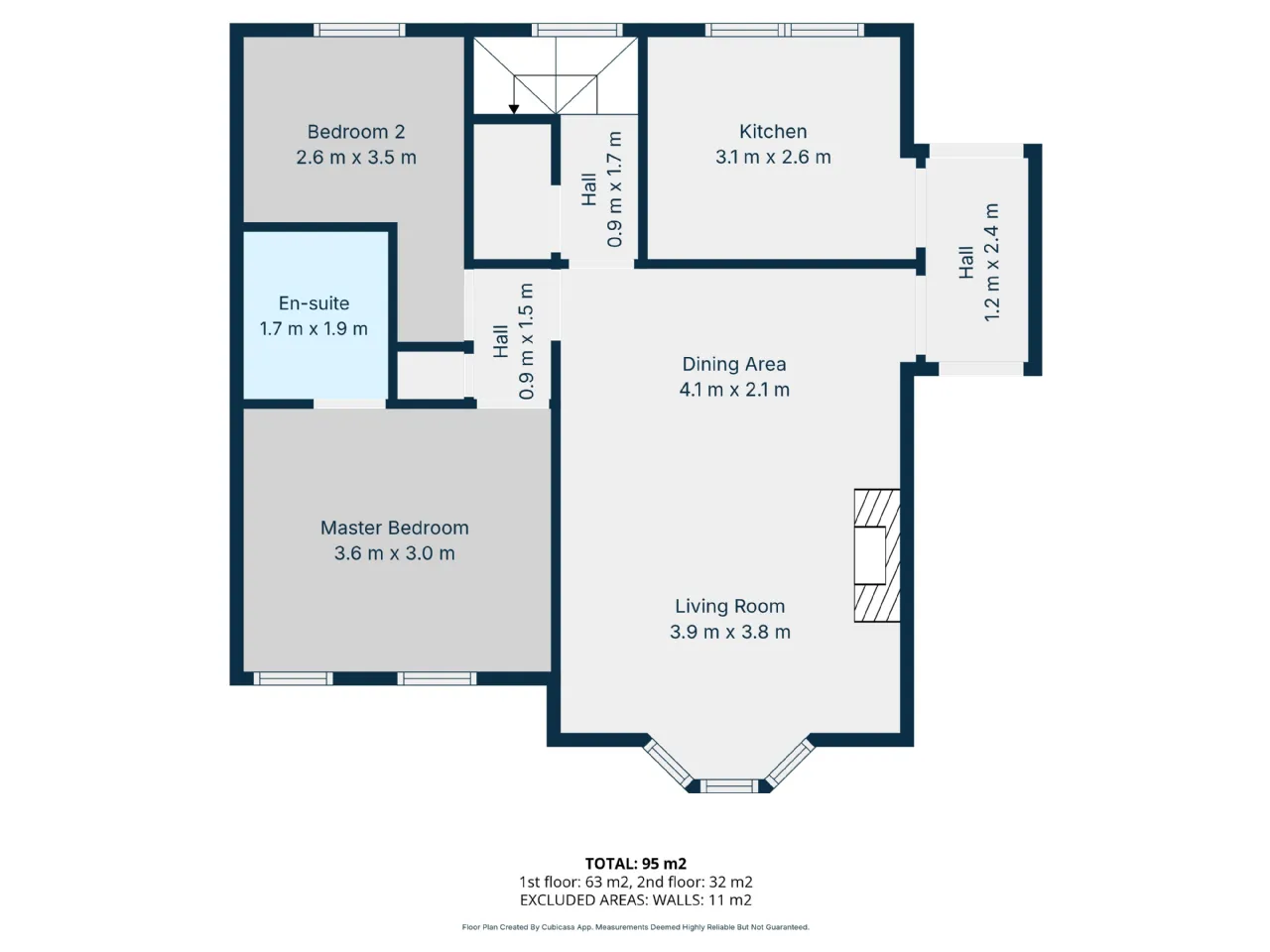 The property briefly comprises of a large sitting/dining room with feature fireplace, a bright airy kitchen, two spacious bedrooms on the ground floor including the master bedroom which has its own ensuite, and on the first floor a further two double bedrooms and a family bathroom.