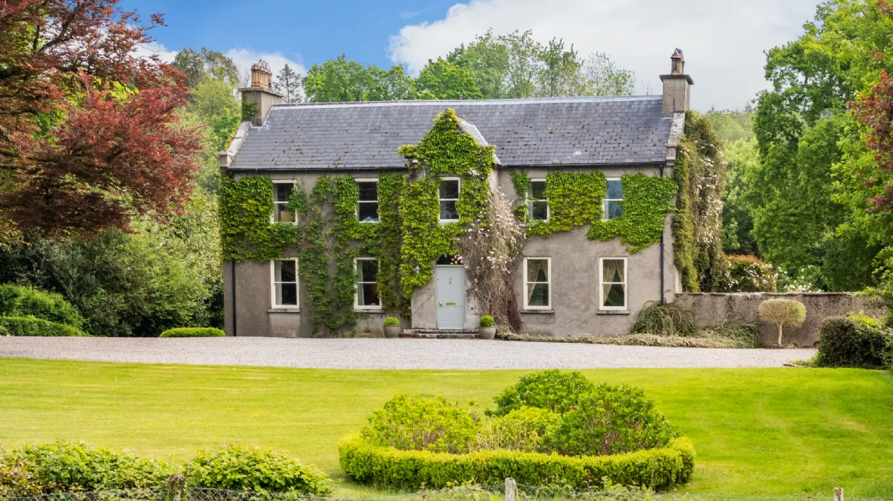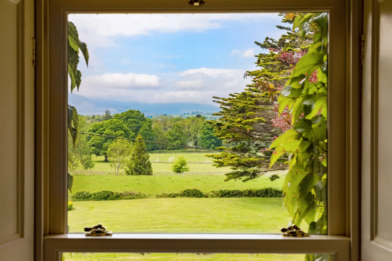 Ballinapark House enjoys a secluded and private setting, surrounded by picturesque parkland and offering scenic views over the Blackstairs Mountains. A long driveway, secured by