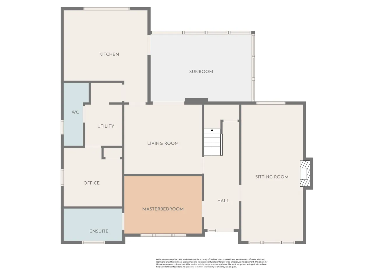 Internally the generously proportioned accommodation comprises an entrance hall with under stair storage, large dual aspect living room, dining room, sun room, kitchen, utility room, study, 4 bedrooms, one ensuite and a family bathroom.