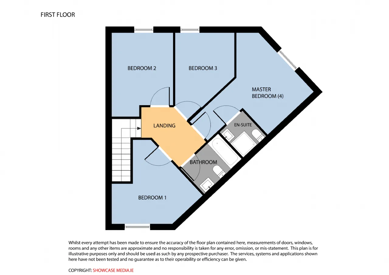 Master Bedroom 4 4.89m x 4.35m at widest point, laminate wood flooring.